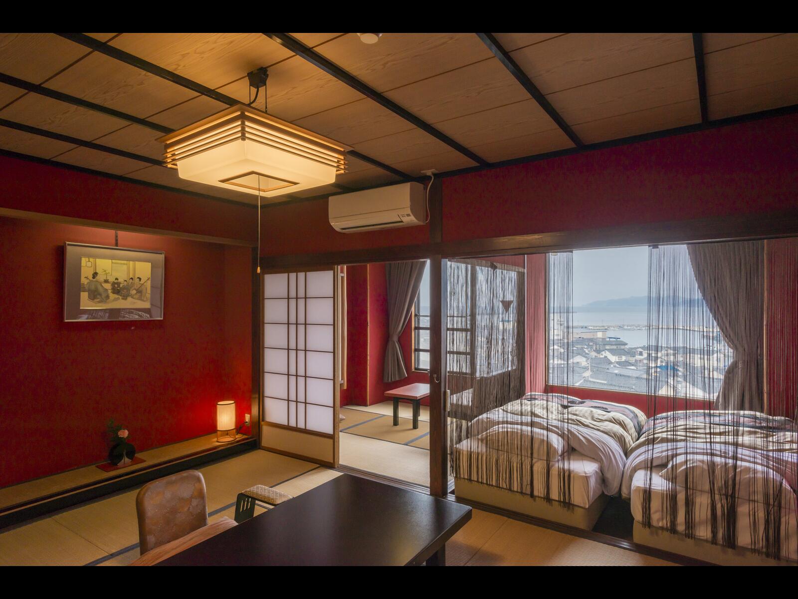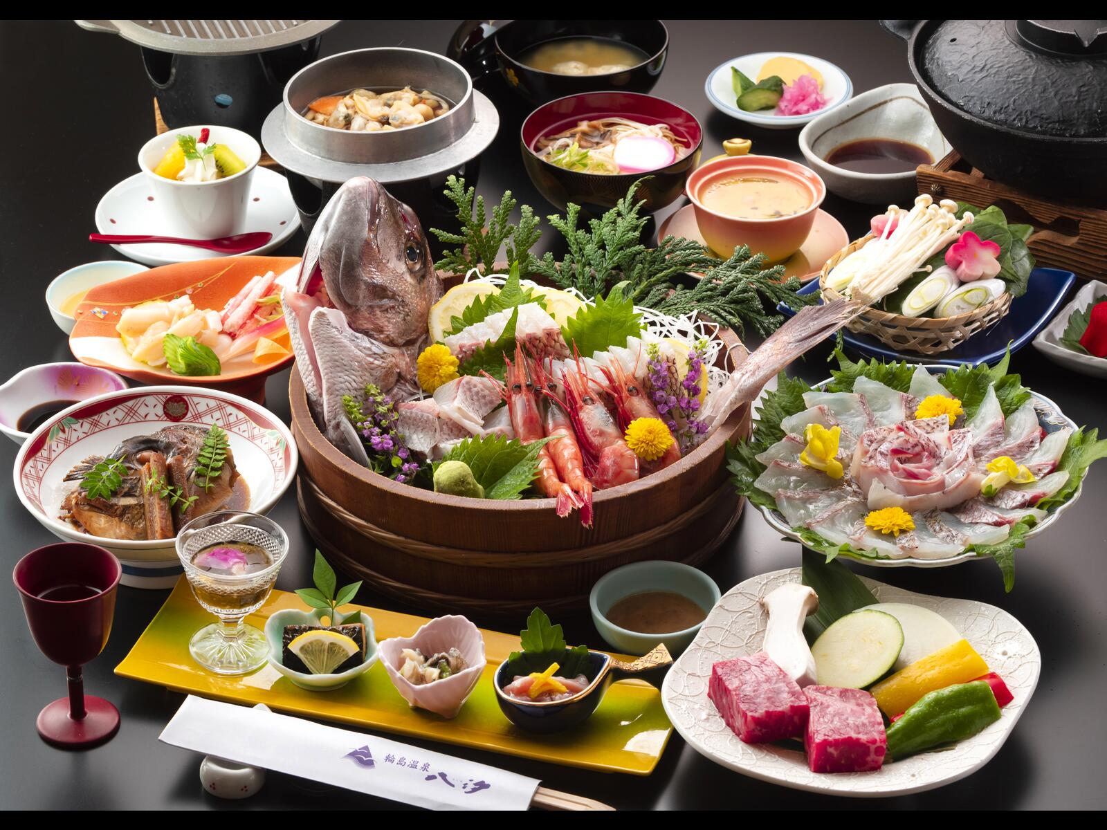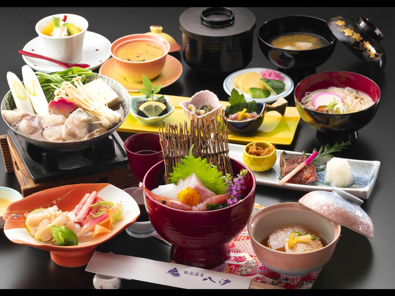 輪島港・袖ヶ浜を一望する景勝地にあり、客室から日本海が眺望できます。輪島港を一望する貸切露天風呂も二ヶ所あり、ご好評頂いております。