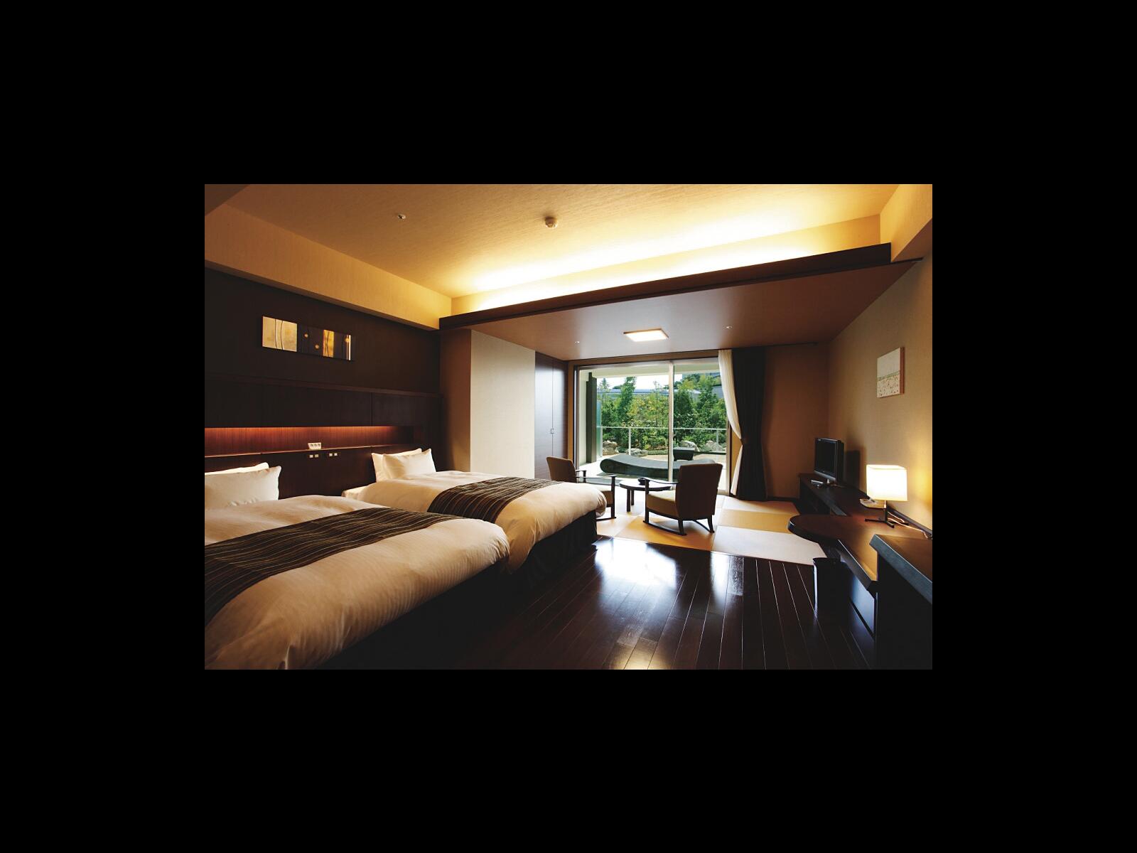 お部屋:ガーデンコート棟 和モダンタイプ和ベッド2台 禁煙 庭園側 35平米/シャワー付(内風呂なし)