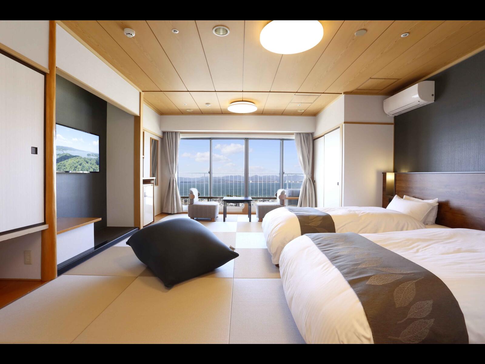 お部屋:スカイコート棟 和モダンタイプ和ベッド2台 禁煙 湖側 29平米