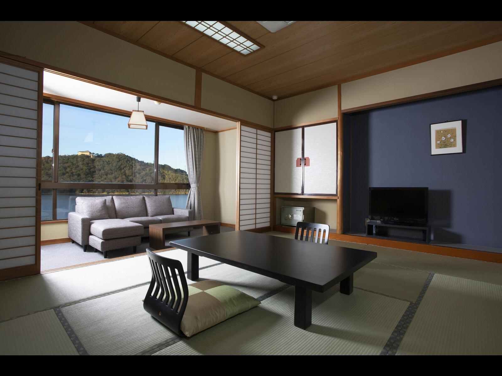 お部屋:和室和ベッド2台 禁煙 湖側 12畳