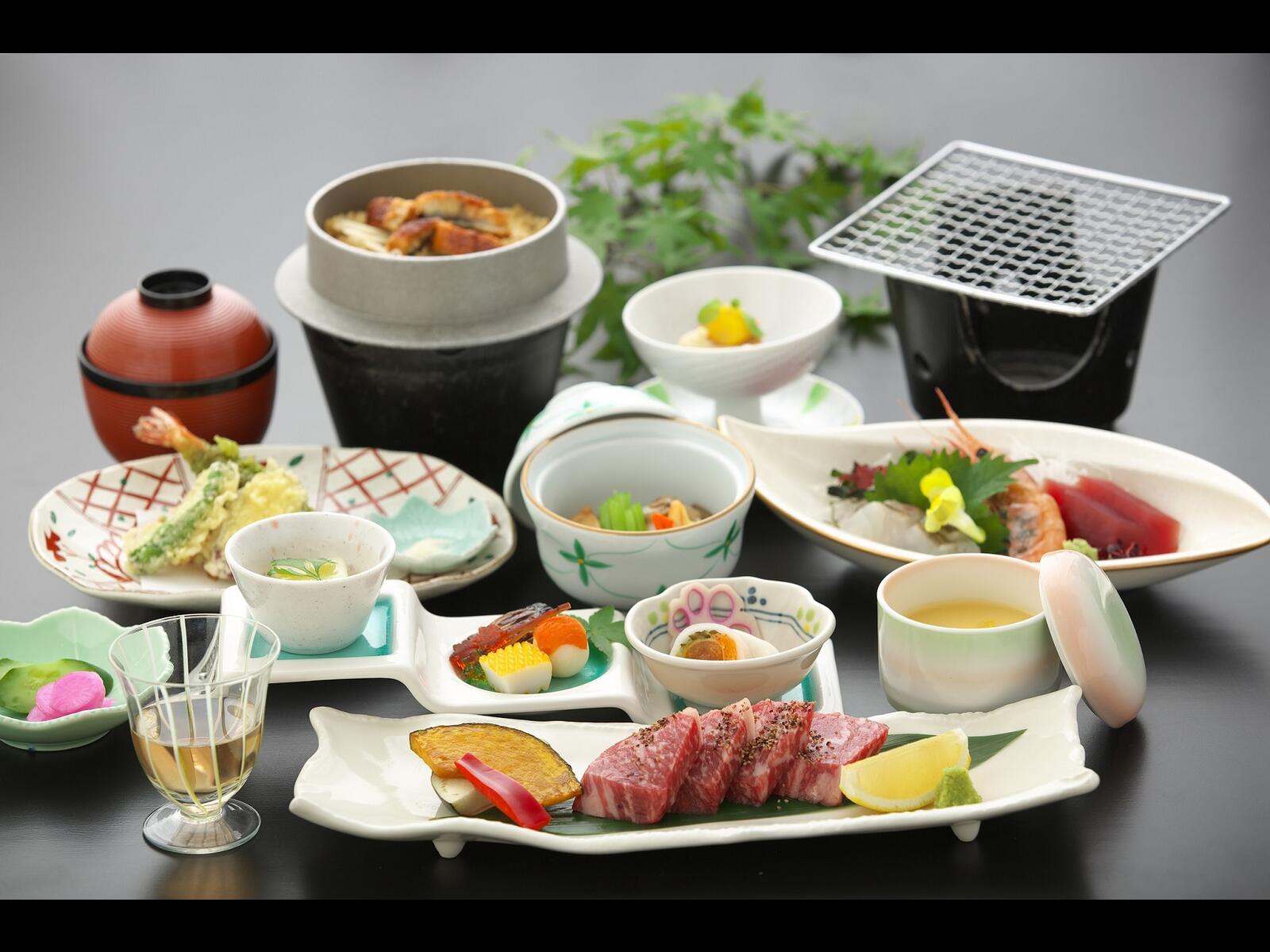 +plusプラン・夕食時JTBオリジナルデザート付!夕食は峯野牛ステーキと鰻の釜飯付会席(基本料理)