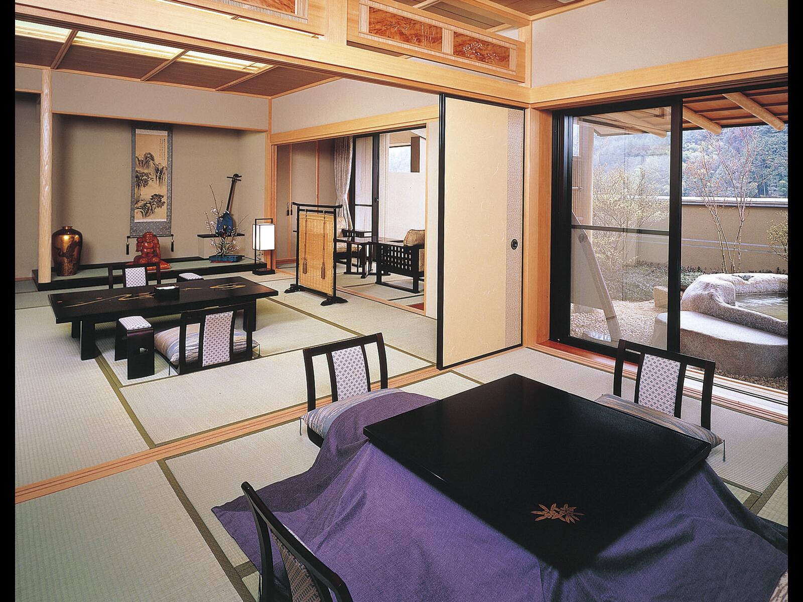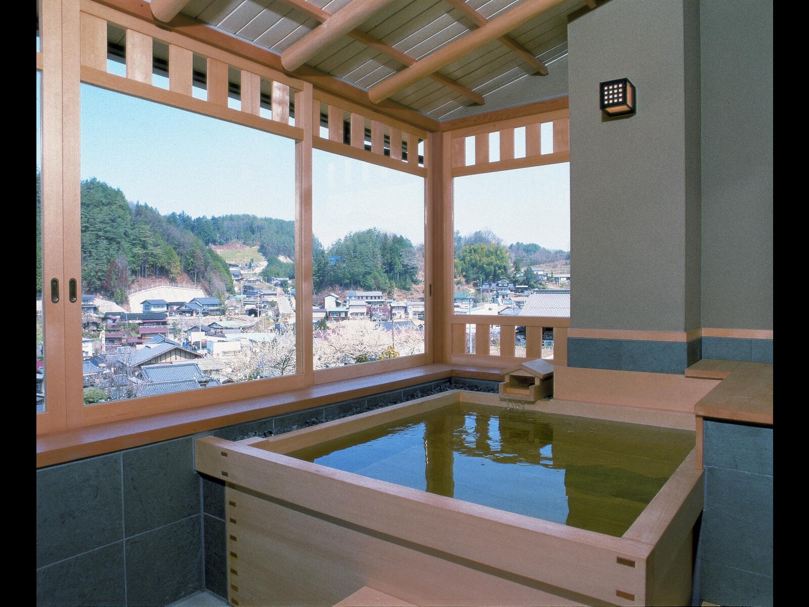 牧歌的な古郷の風景の広がる中、日本調たっぷりの二階建の宿です。料理も郷土の素材を生かした懐石料理四季折々の味をお楽しみ頂けます。イロリも好評