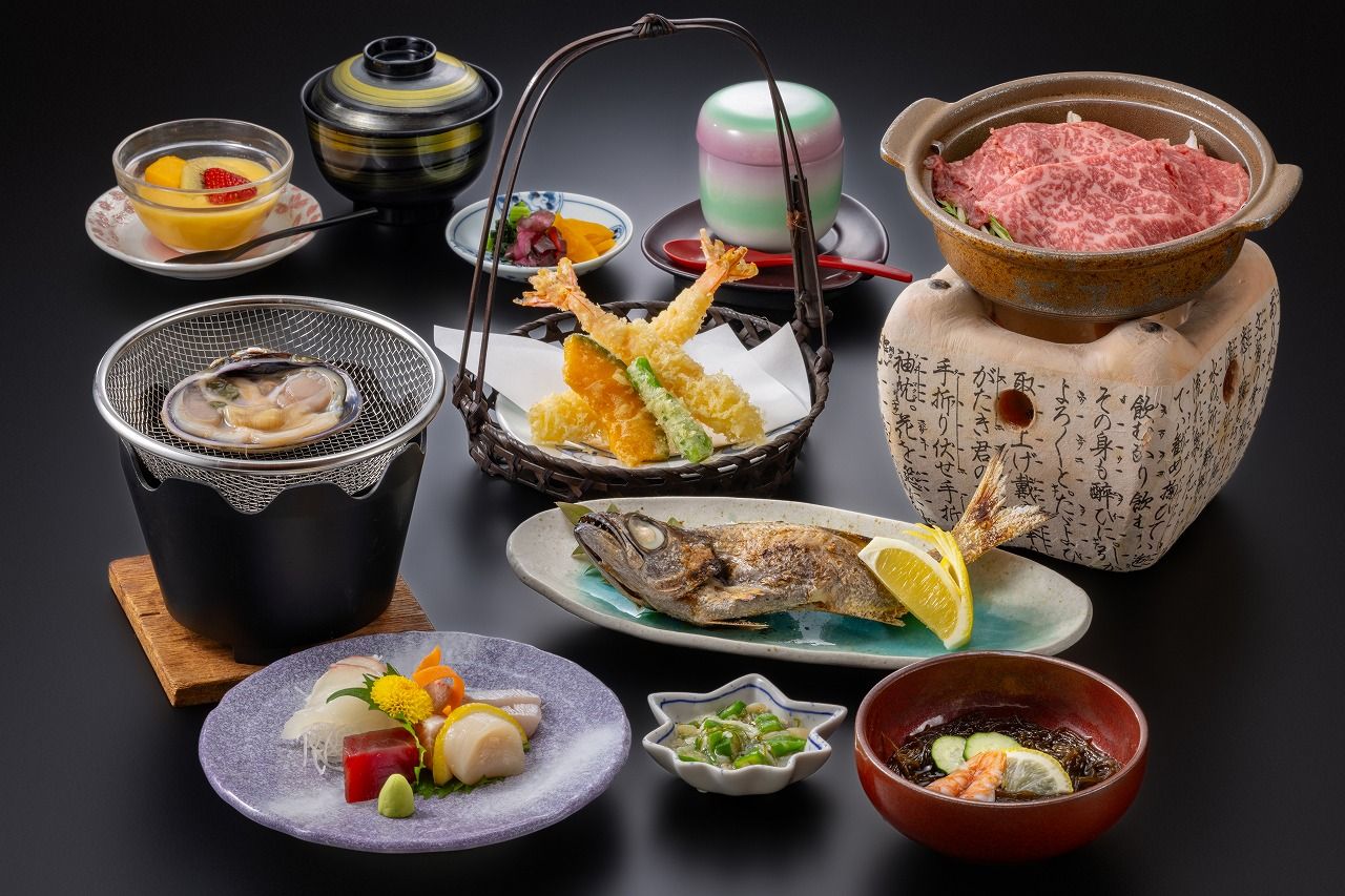 穏やかな三河の海を眺めながら天然の湯の香に包まれる雄大な自然の中にあるがままの数寄屋造りの露天風呂「曙光の湯」で身も心も寛ぎの時へと誘います