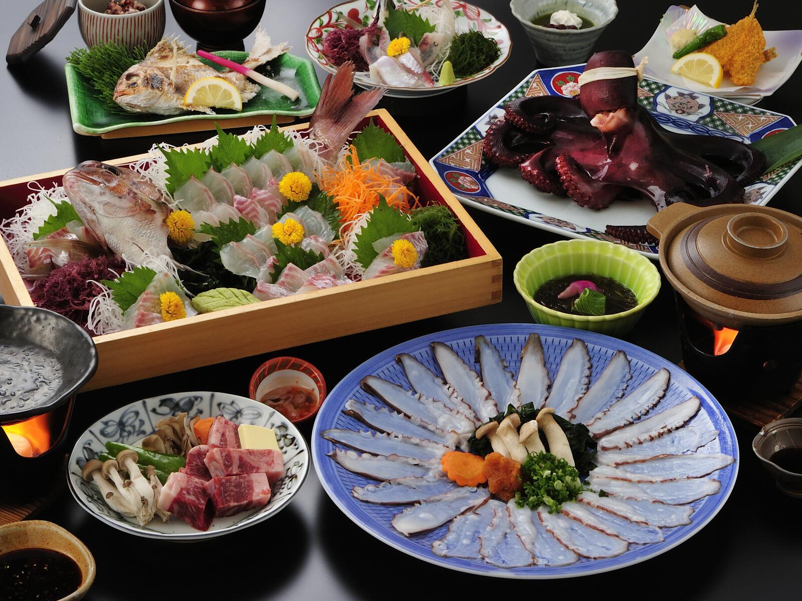 朝に夕に風情漂う浜辺の宿のキャッチ通り、サンセットビーチを目前にし、島の磯料理と旅情を満喫できる宿です。夕景を前にした露天風呂は格別です。