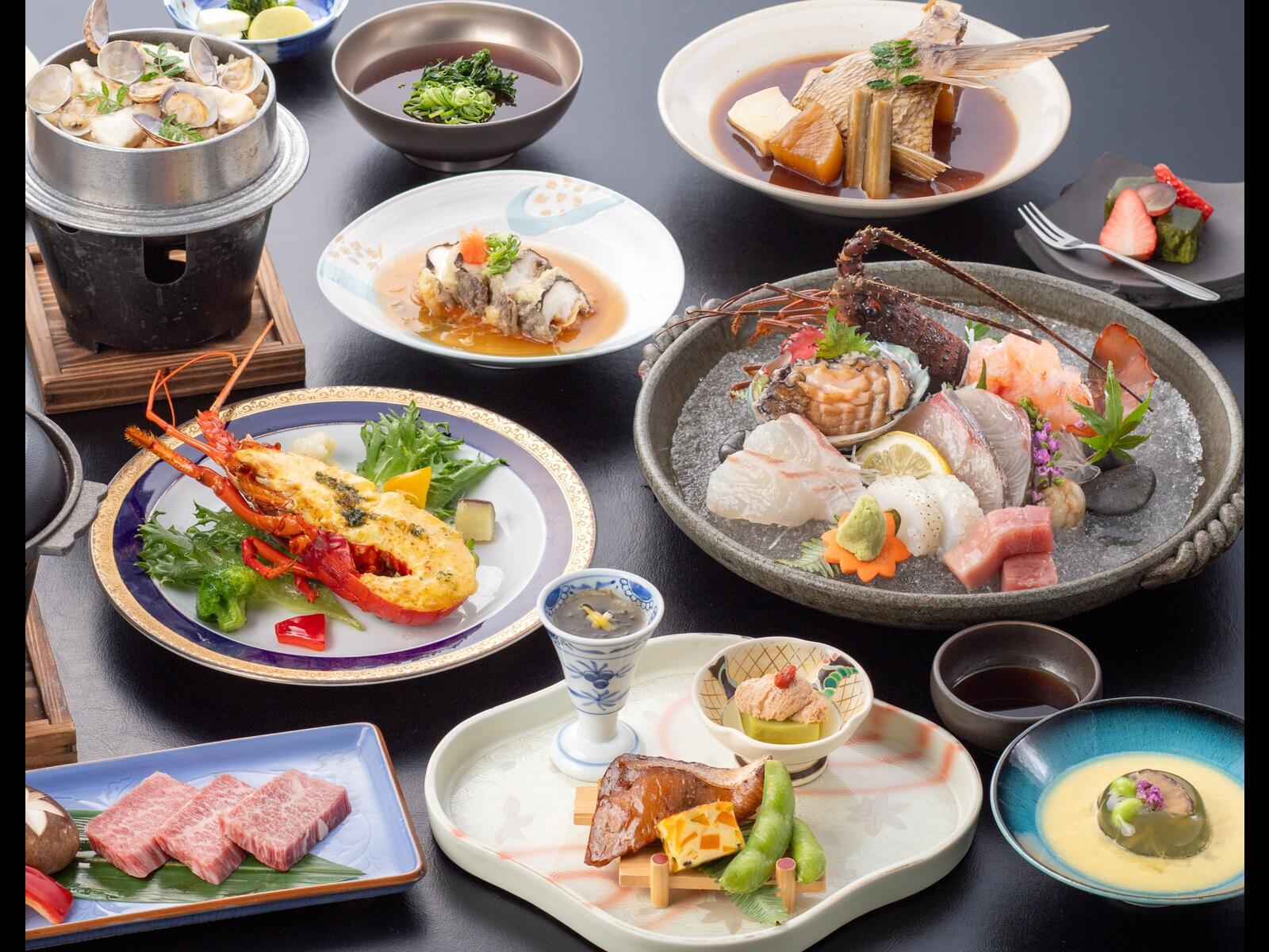 +plusプラン・おとなは夕食時、伊勢海老・鮑からメインが選べる海幸会席(基本料理)