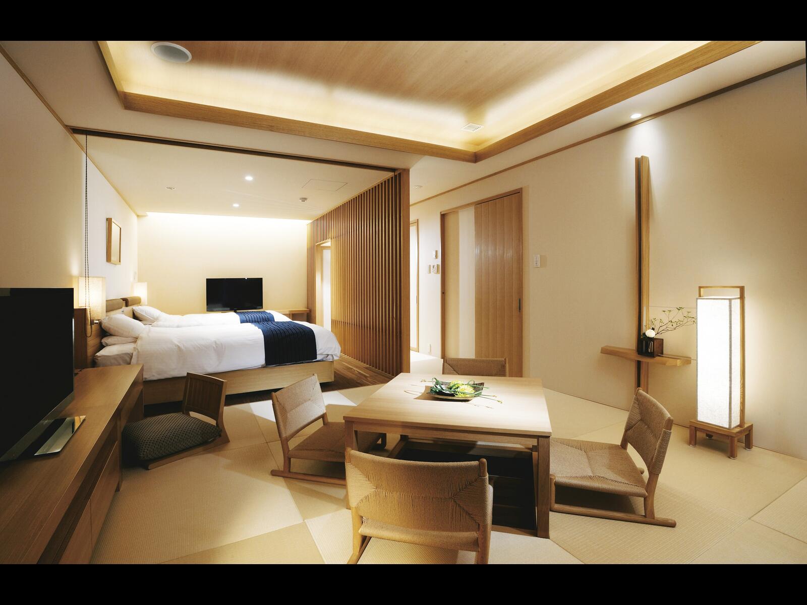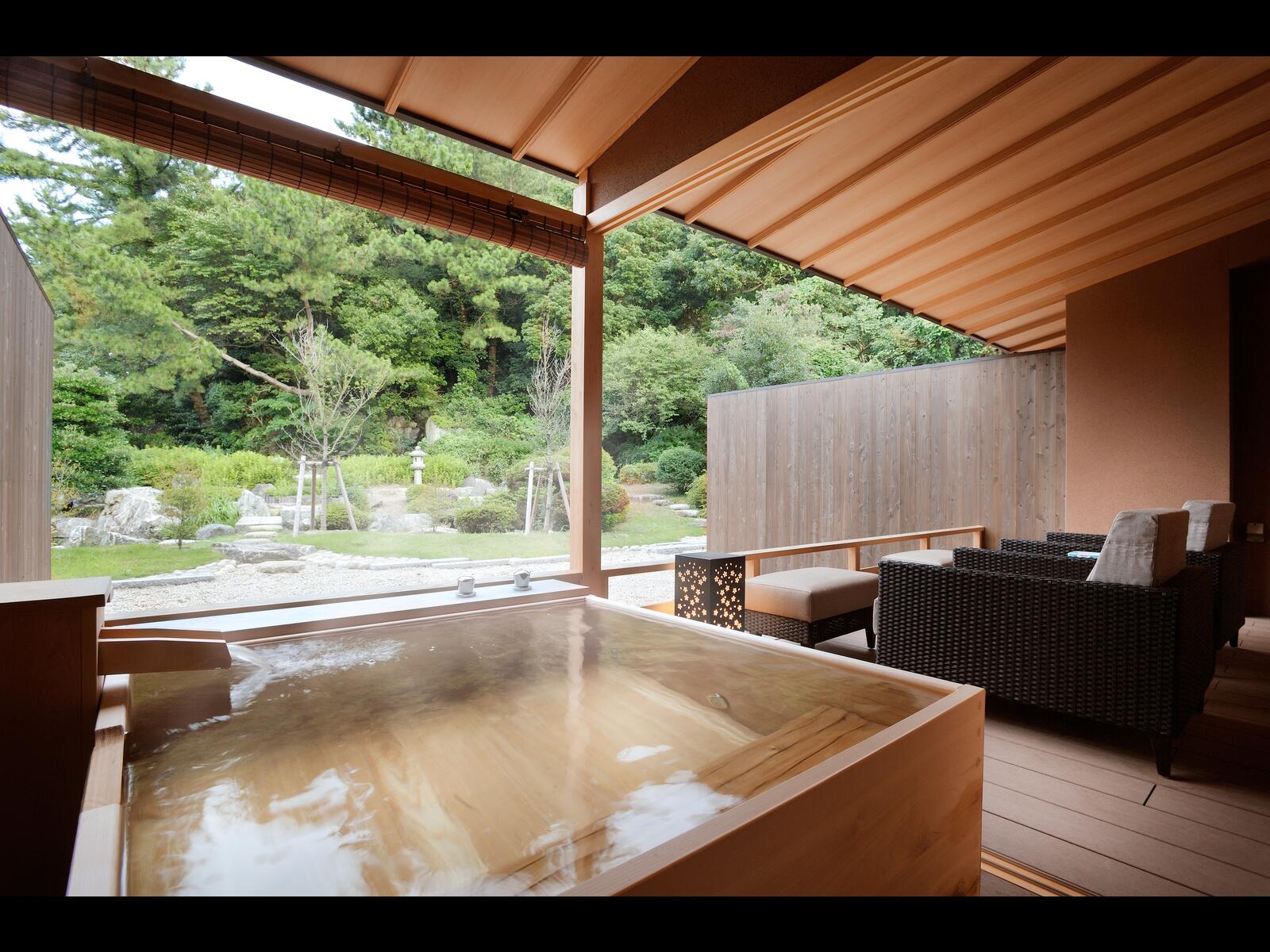 お部屋:プレミアムスイート露天風呂付和洋室 2ベッド 禁煙 庭園 63平米/露天風呂付
