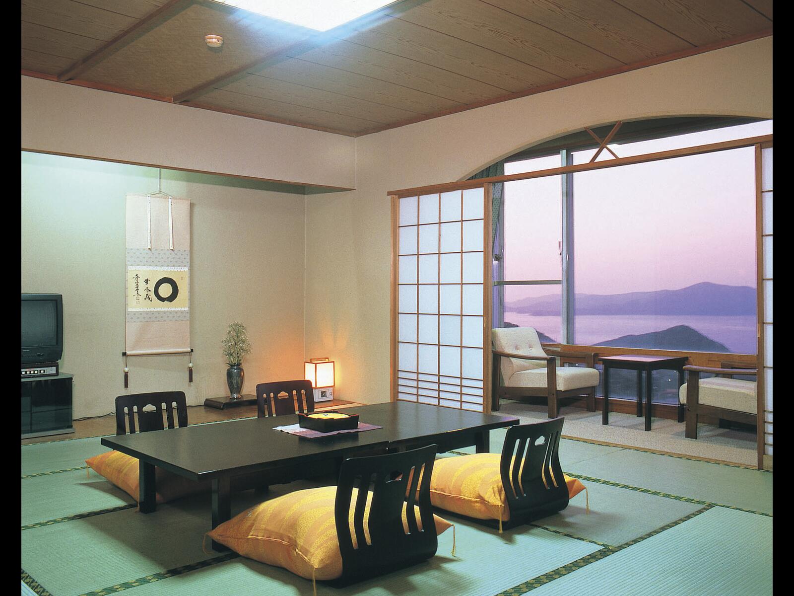 結婚30周年の旅行と伝えていて、夕食時に可愛いブーケをプレゼントして頂き、有難うございました。とても感激しました。 部屋は和洋式。ベッドはスプリングを床に乗せていただけで、リュウマチ持ちの主人には少し寝起きが苦痛でした。 畳は歩くと沈むような感覚で、キシキシ言っていました。 窓側の障子は破れていたり隠す貼り紙も取れかけていました。 食事の際には、疑問やトラブルにすぐに対応して頂き、誠意を感じましたが、食器の点検、準備の際、予めもう少し確認を念入りにすれば、トラブルもないのではと思いました。 大浴場と露天風呂はセパレートになっていて使い勝手は良いとは言えませんでしたが、見晴らしがよく、それぞれ楽しめました。 全体的にスタッフの方々は、真摯に対応してくださり、いごごち良かったです。お世話になり、有難うございました。