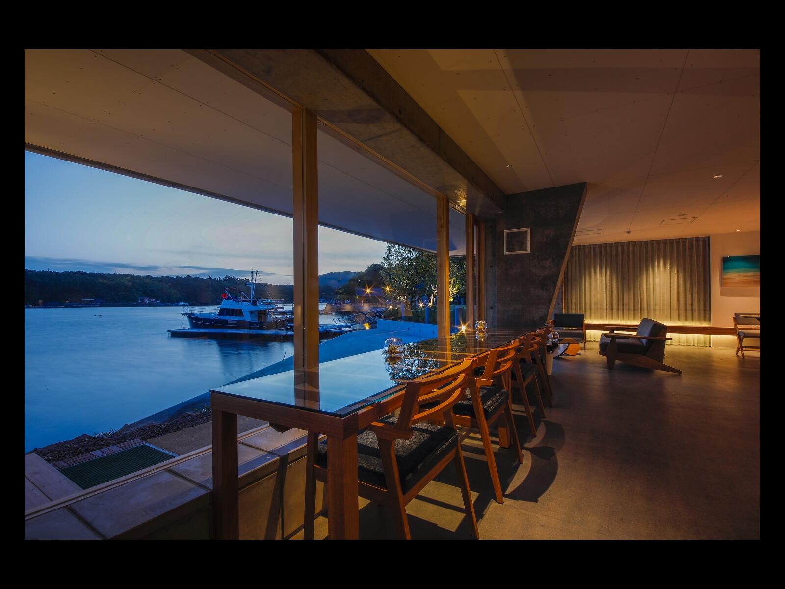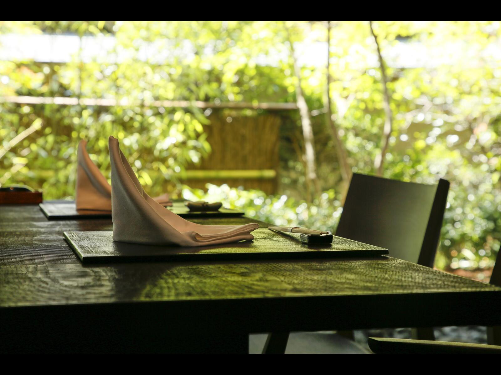 中庭を望む個室ダイニング(朝・夕共こちらでお召し上がりいただきます)