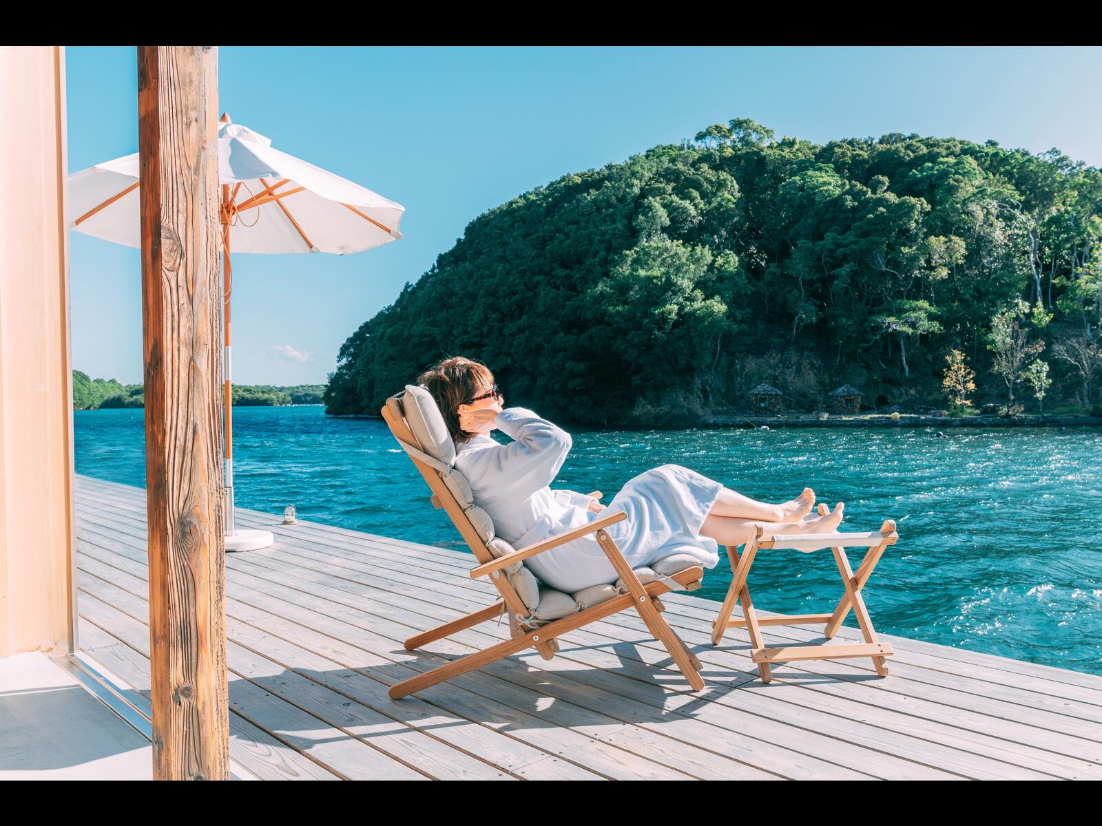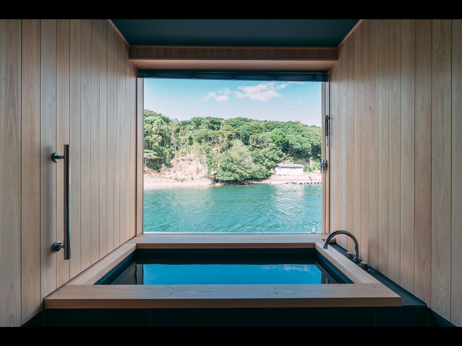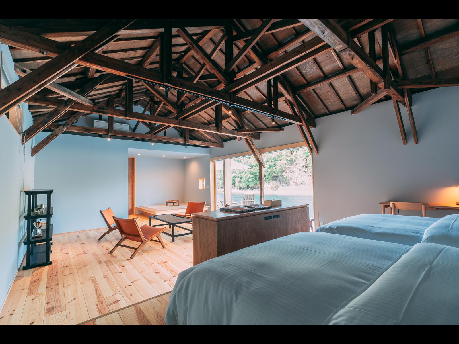 独立した3棟4室ある客室の大きな窓からは、木々と静かな海を望むことができ、ゆったりとお過ごしいただけるように客室にもこだわりました。