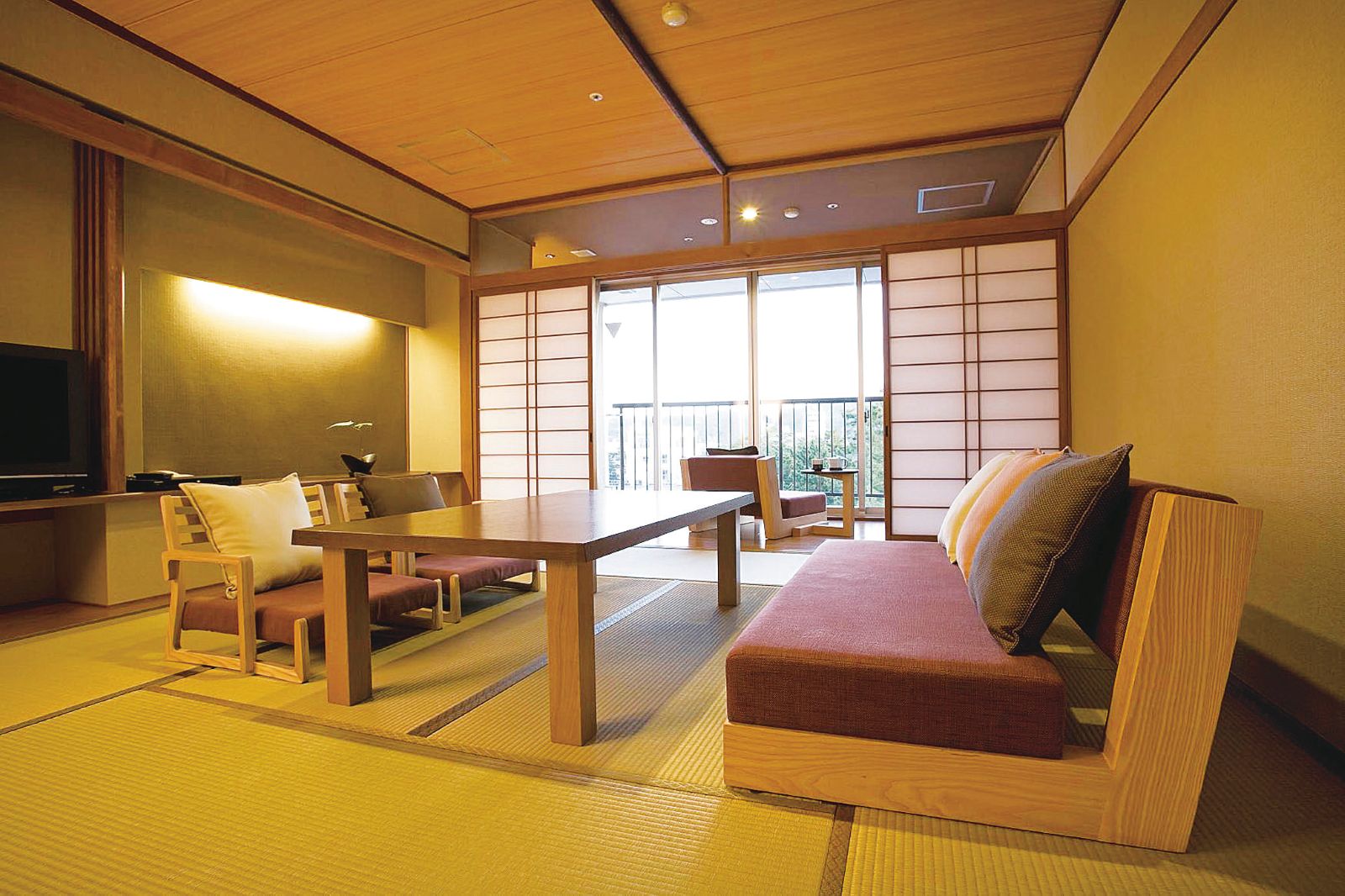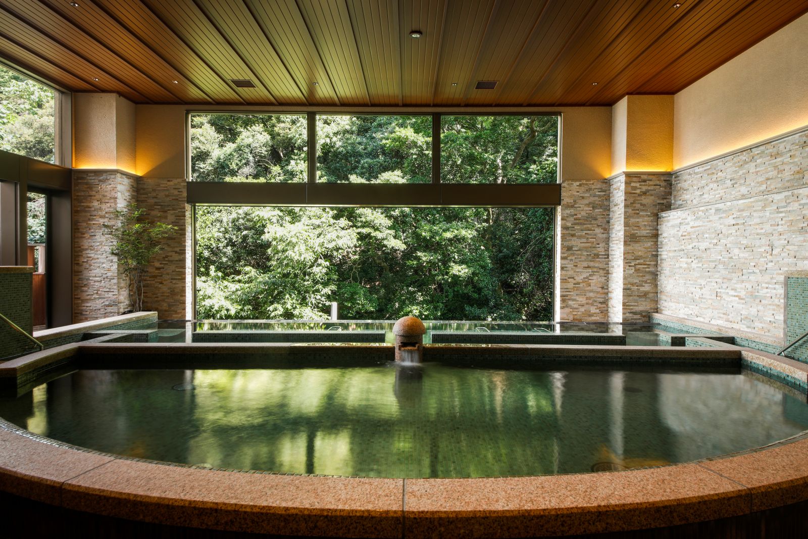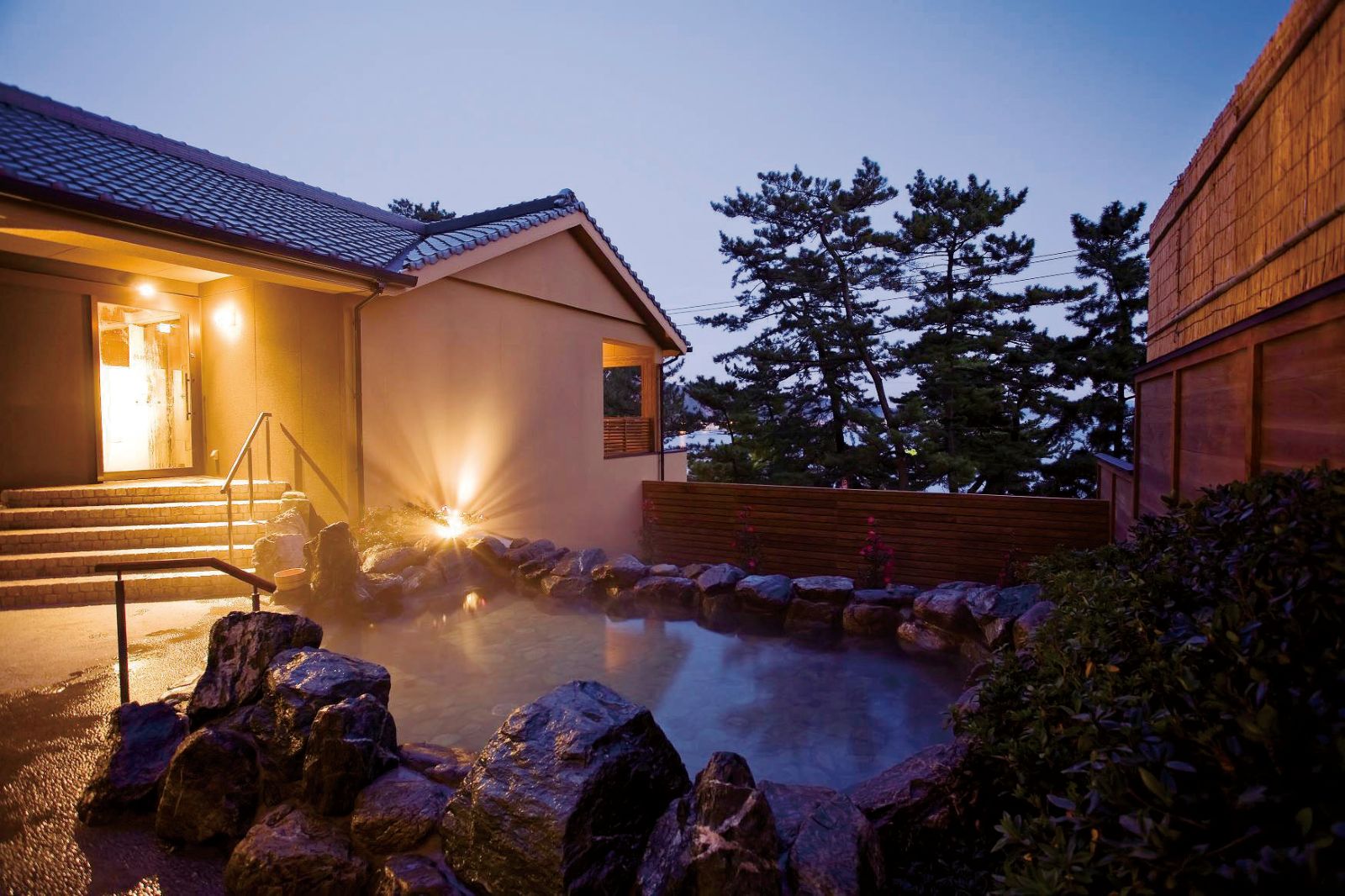 離れスパ海音の森・スパフロア海風の多彩な湯処を愉しみ、淡路島の山海の幸をダイニングや個室料亭で堪能できる。ミシュランガイド4パビリオン獲得。