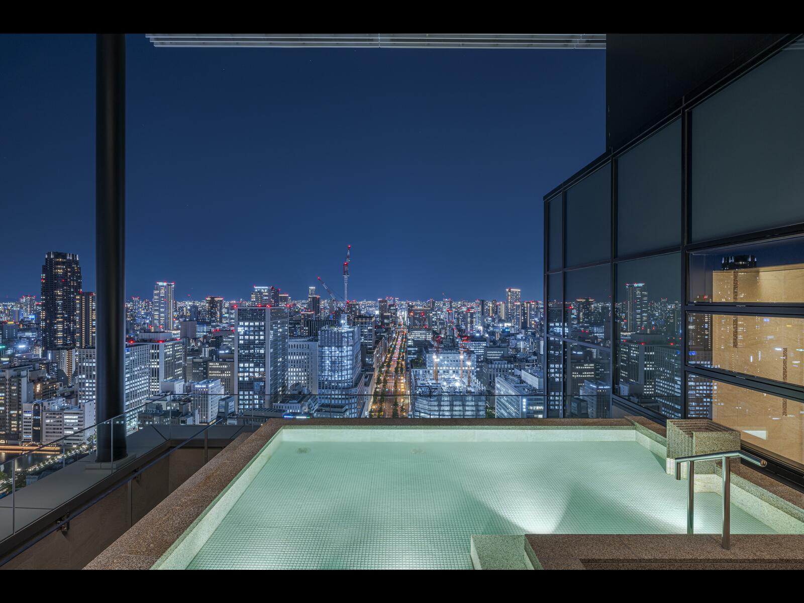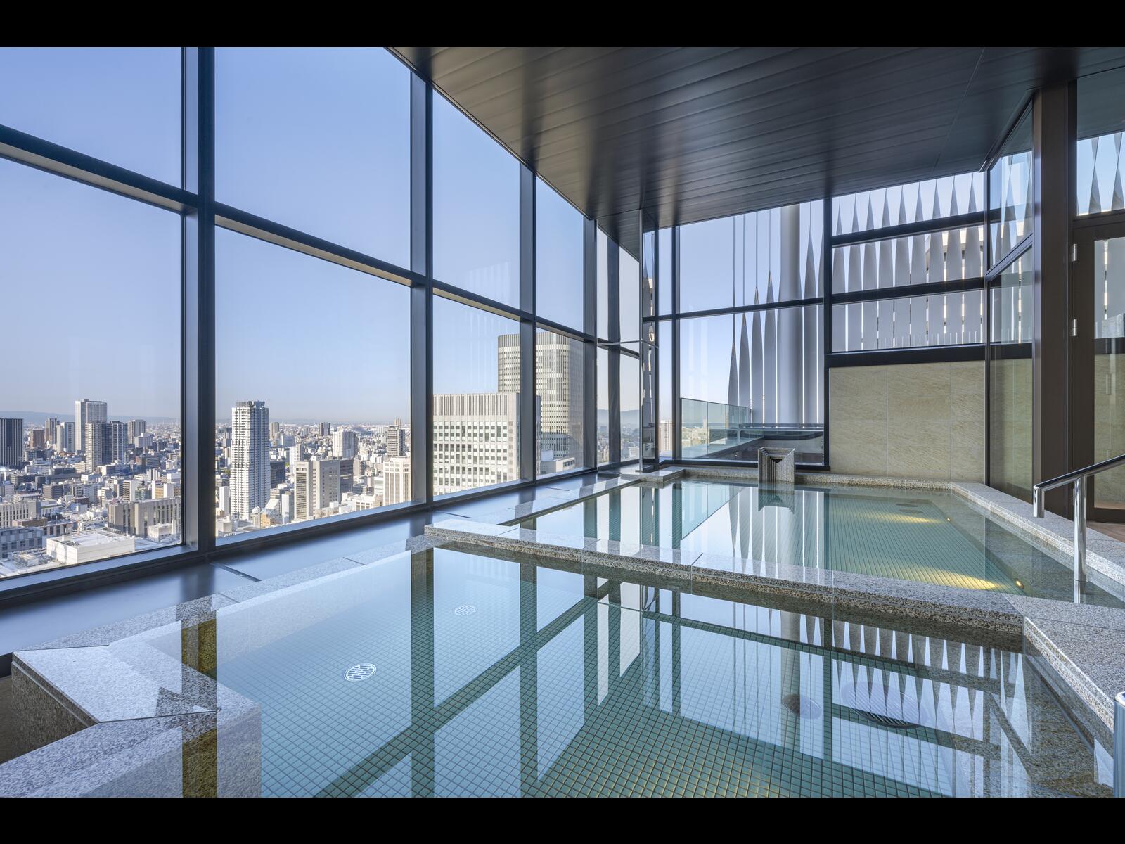 御堂筋を眼下に見下ろす、地上135m(31階)に展望露天風呂を備えた「天空のスカイスパ」