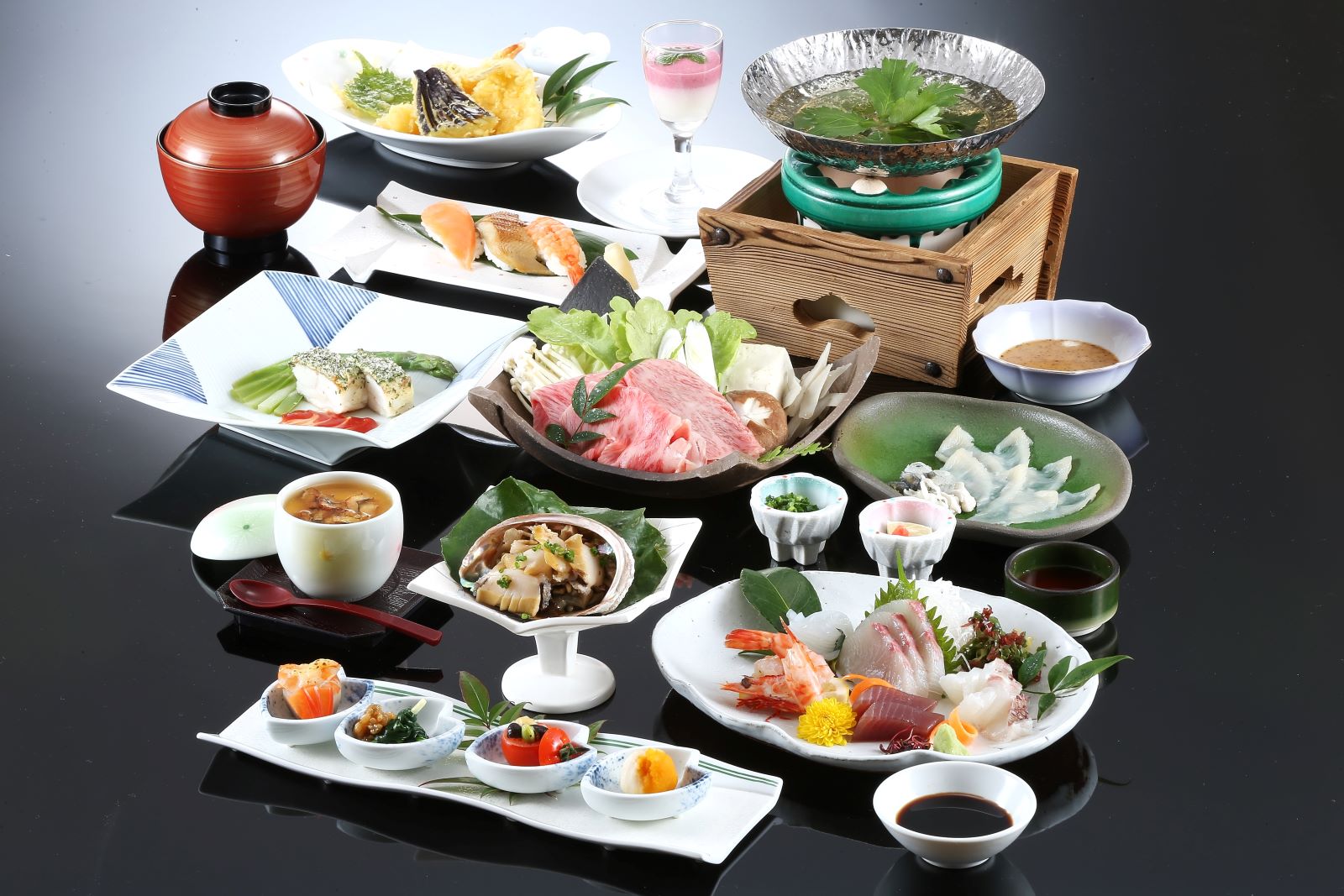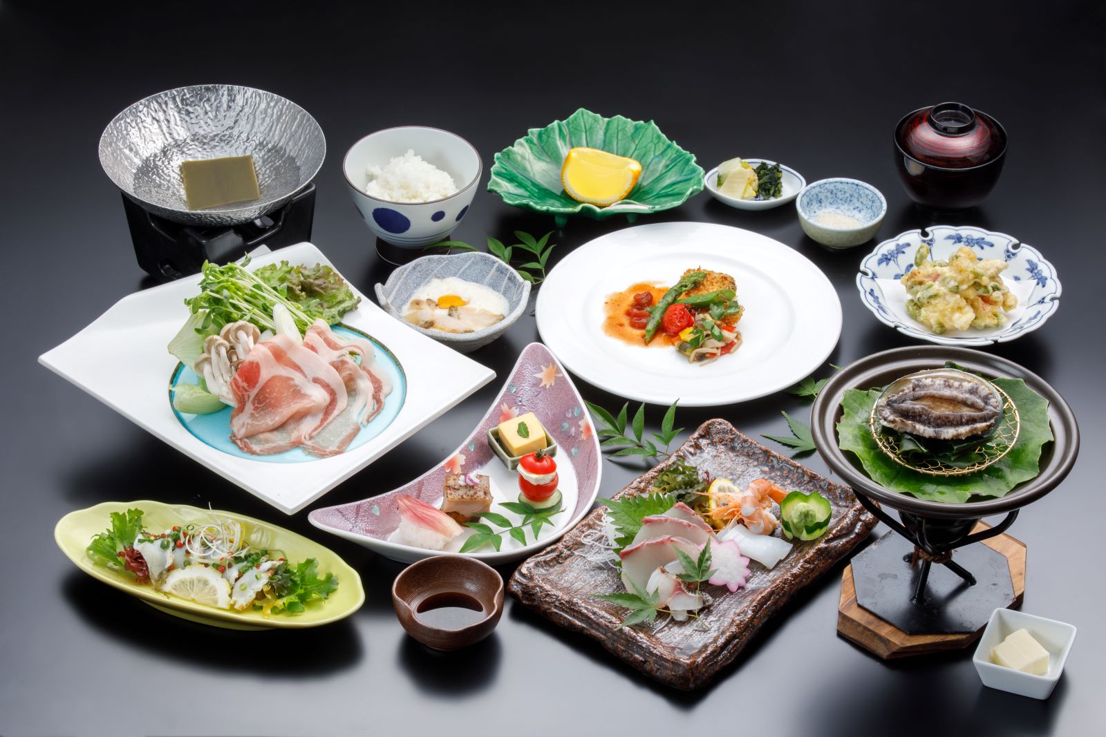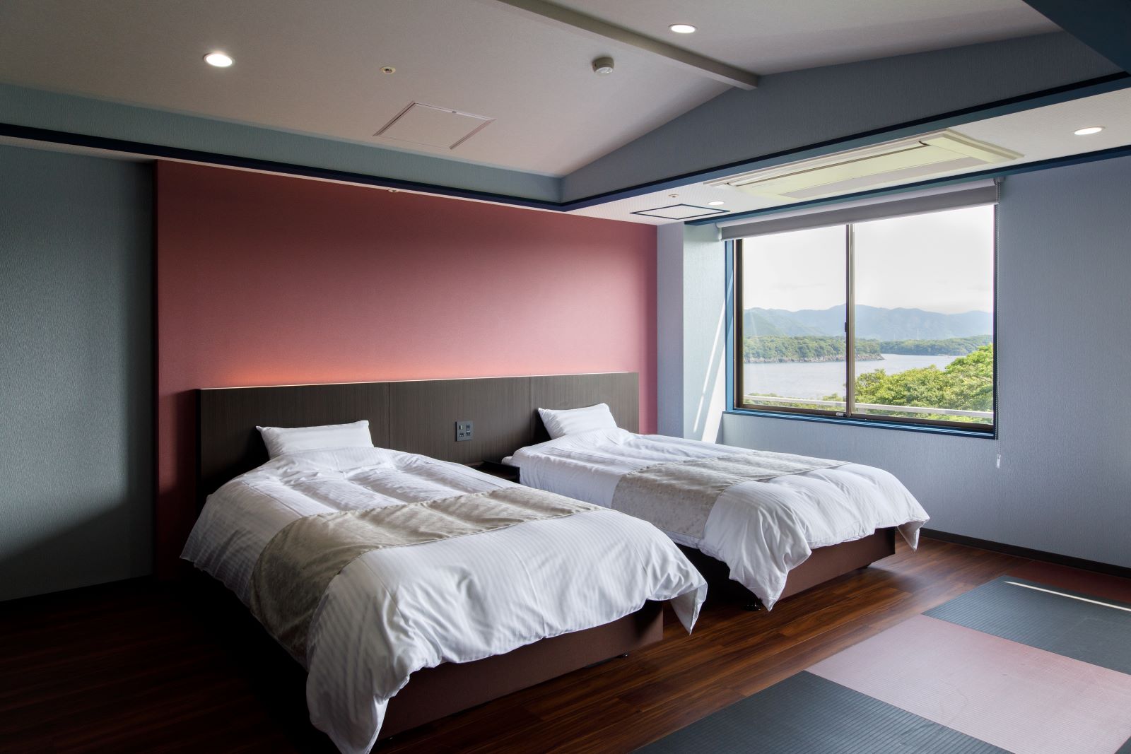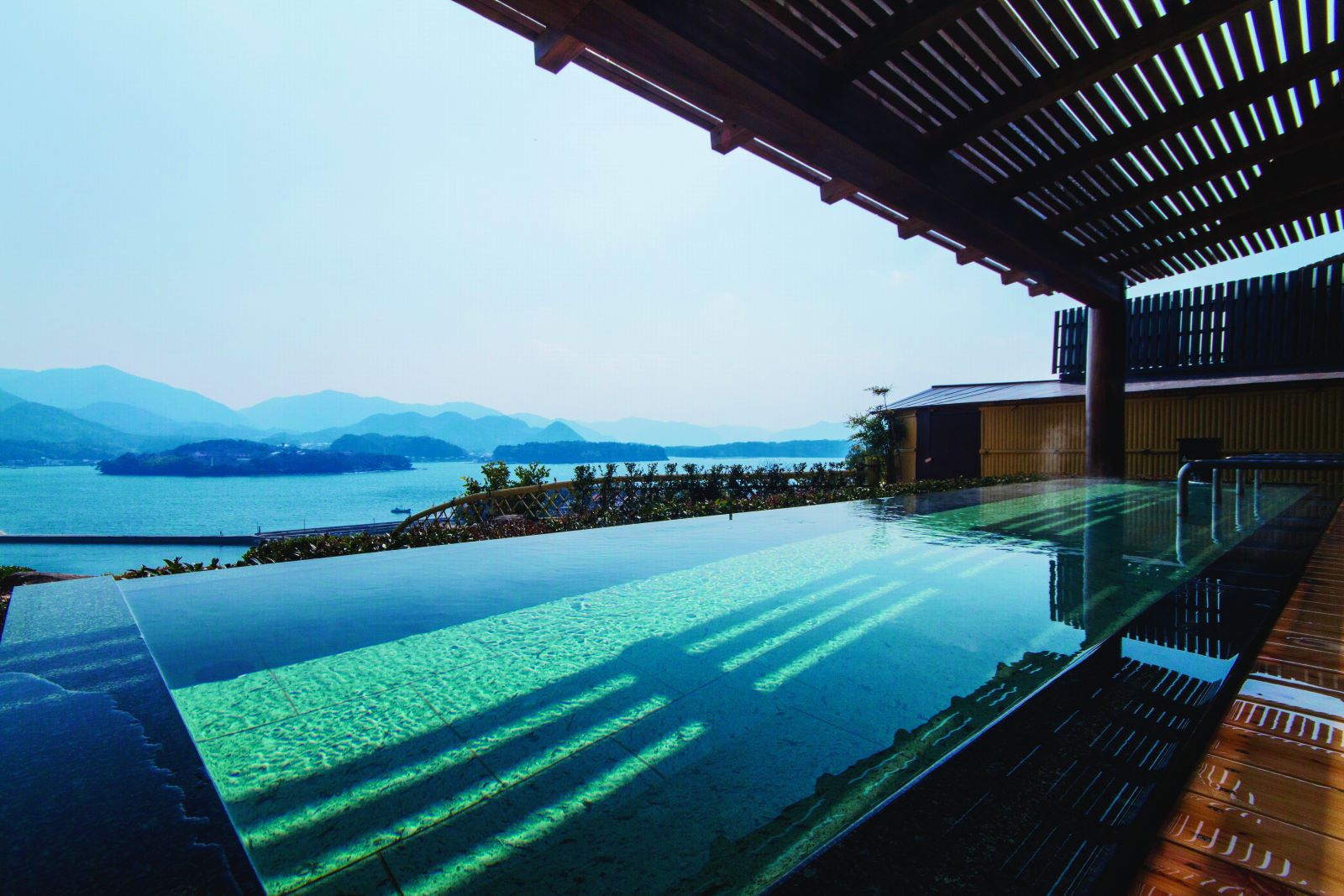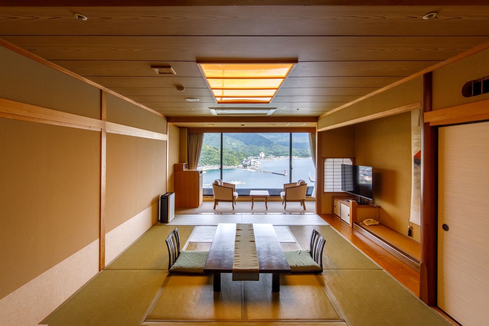 笠山の中腹に立地し、ホテルのロビーから見える静かな萩湾の景色は見る人を魅了し、時の流れるのを忘れてしまう程に美しく静かな憩いの空間です。