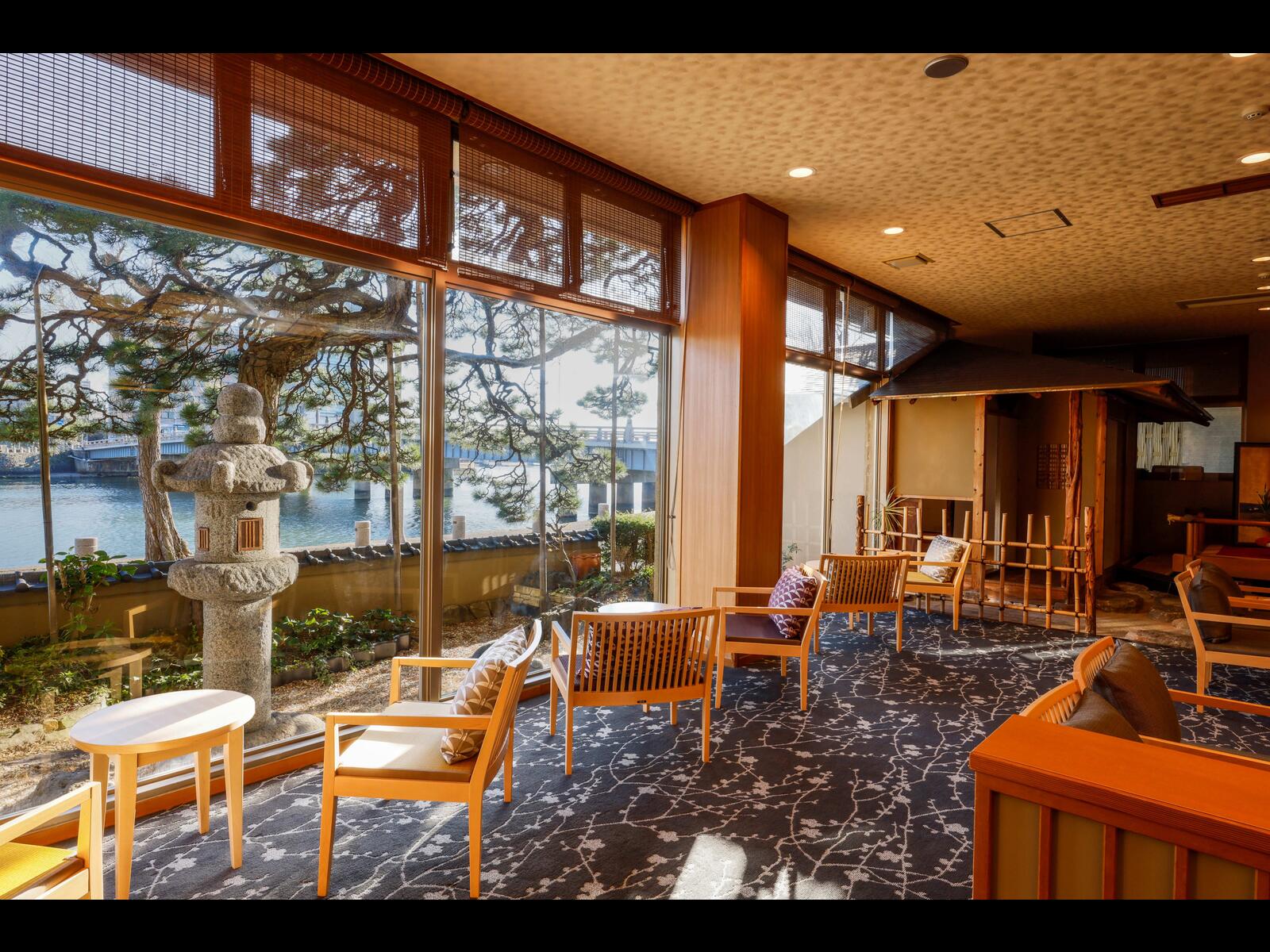 小泉八雲ゆかりの宿。ロビーでは琴の生演奏を聞きながら抹茶でのもてなしがある。客室からは宍道湖や大橋川が望め、地下には温泉浴場があります。
