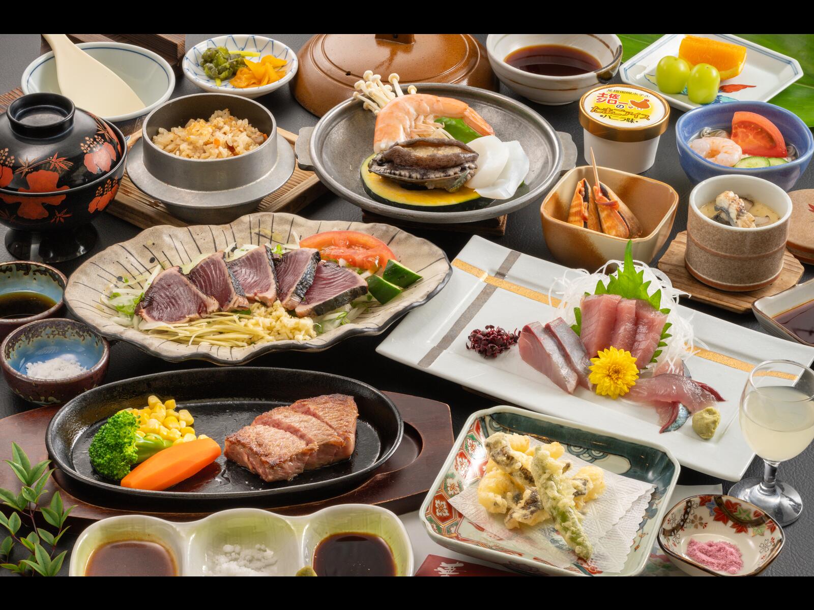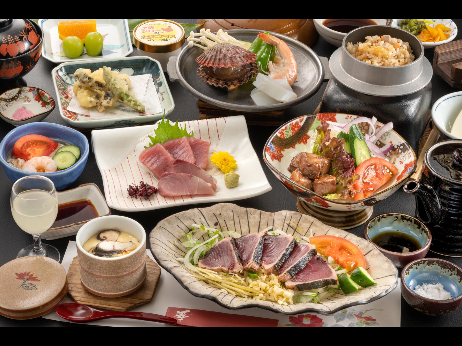 ■あしずり基本会席■土佐清水流の<鰹のタタキ>ほか、旬の幸をたっぷりと♪