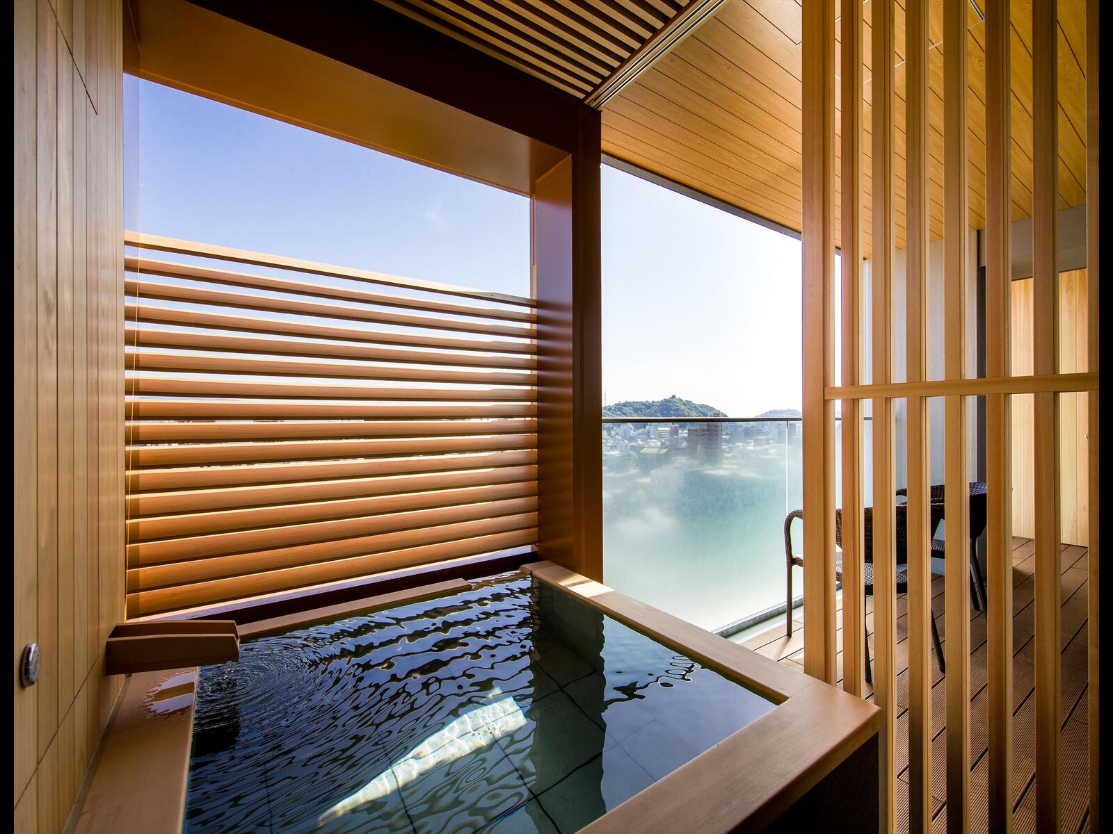 道後温泉街の高台に位置し、全ての部屋に松山市街を望む客室露天風呂を備えました。普段着の非日常空間で「現代の湯治」をお楽しみください。