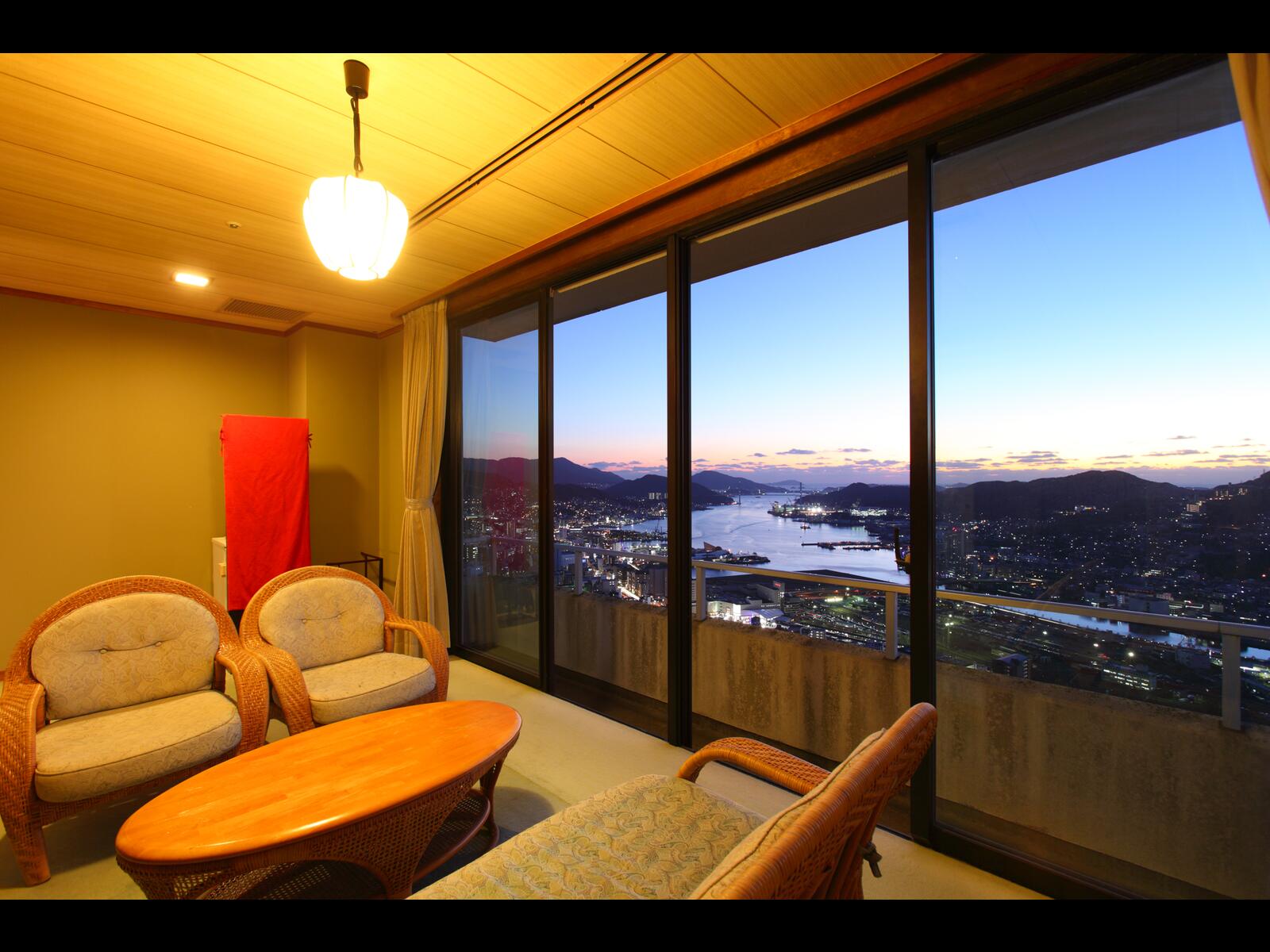 到着したときは、正直言って、建物が古い感じでガッカリしました。しかし、部屋にはいると広々として清潔で窓一面の夜景に思わず歓喜の声をあげました。部屋担当の方の笑顔と対応がとても良かったです。しっぽく料理の説明をしてもらい、味わいながら食べることができました。寝具がとても気持ちよかったです。フロントでは、市内観光のために駐車場までの道を詳しく教えて頂きました。お陰で路面電車への不安もなく、無事に運転できました。感謝!ただ、大浴場にバスタオルとタオルをおいてもらいたいと思いました。部屋にはタオルをかける場所が足りず、朝風呂では、湿ったバスタオルを使わなければならず残念でした。それ以外は、心のこもった接待が記憶に残る素敵な宿でした!