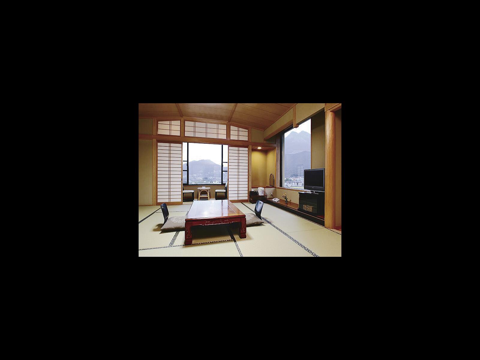 緑に囲まれ静かでゆっくりくつろげる宿。晴れた日は由布院の町並み・由布岳が一望でき疲れを癒すことができくつろげます。