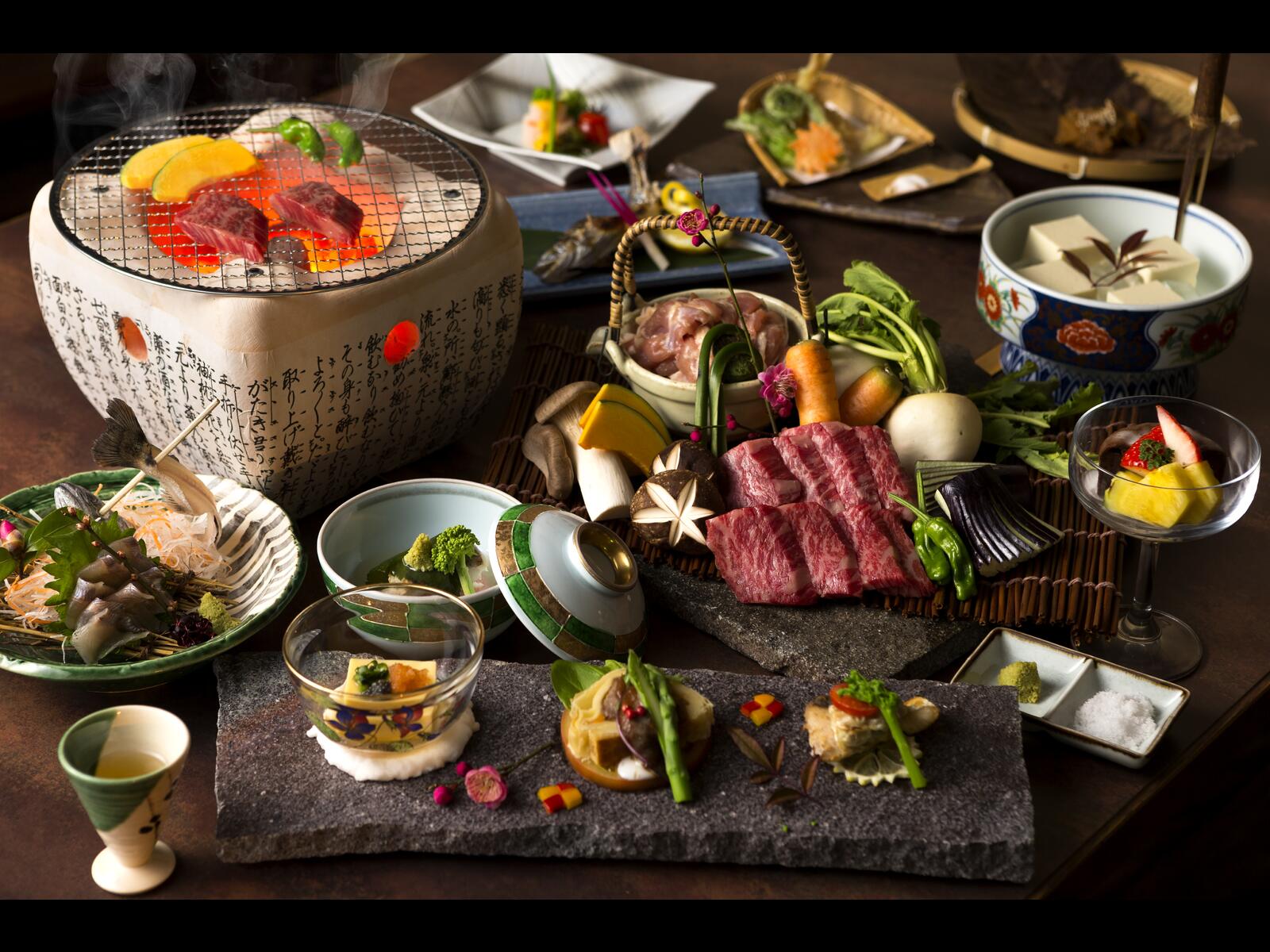 由布岳の山懐の高台に建つ、民芸調純和風造りの御宿です。全室に絶景露天風呂があり、お料理は特上豊後牛や湯布院鶏を使った炭火会席をご堪能ください