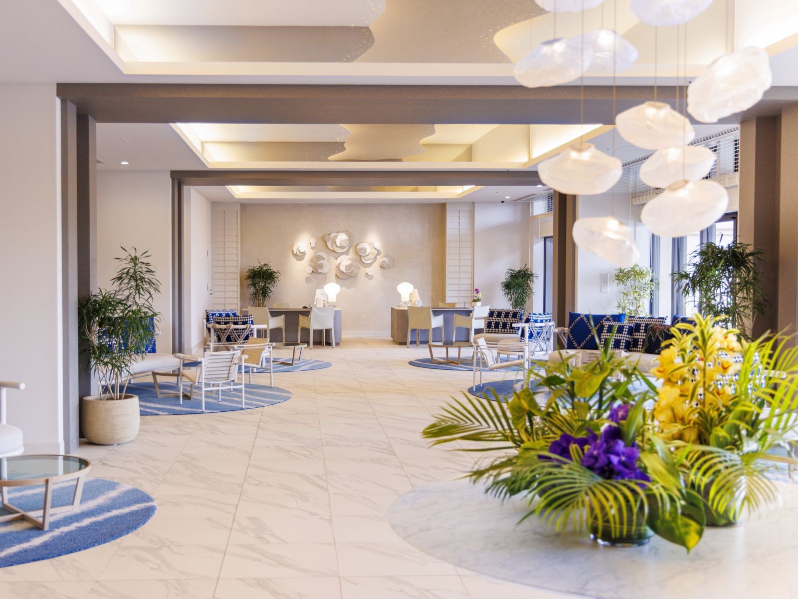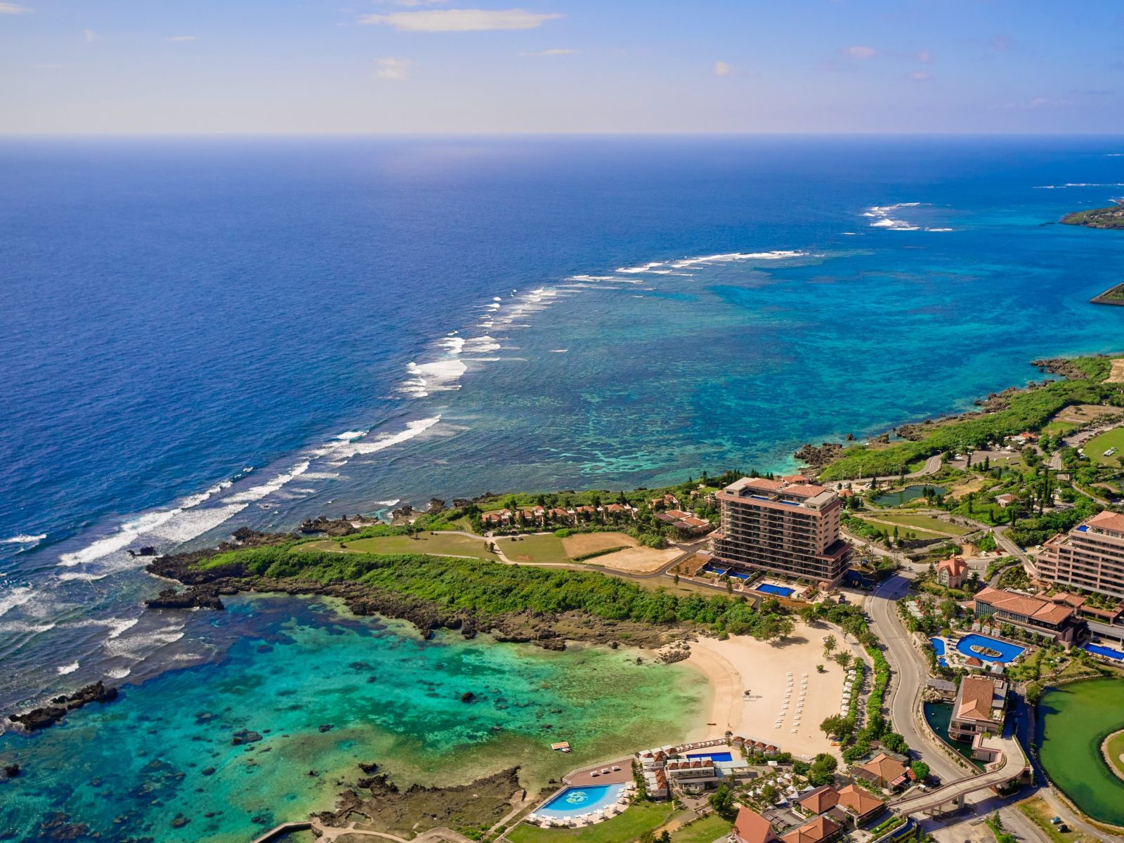 見渡す限り広がる宮古ブルーと称される海。 ビーチを取り囲むコーラルリーフと白砂の模様が美しいグラデーションを描く絶景のポイントに佇むホテルシギラミラージュビーチフロント。