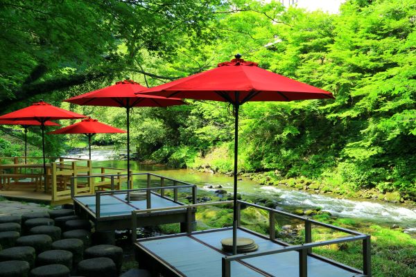 - 直営農場でそばの栽培から製粉・製麺・つゆ作りまで全工程を手掛けた、こだわりの「おろしそば」が自慢。そば打ち体験は子供や初心者も楽しめます。