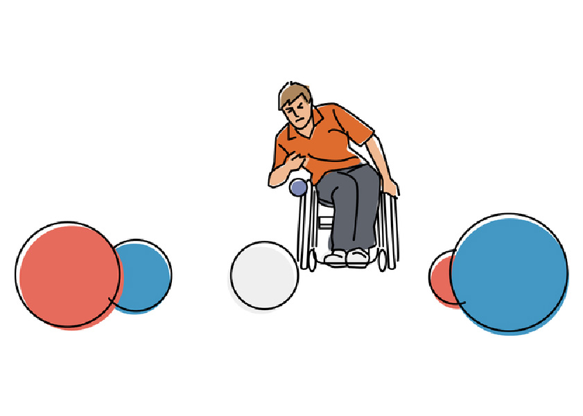 ジャックボールと呼ばれる白いボール(的)に、赤・青のそれぞれ6球のボールをどれだけ近づけることができるかを競うスポーツです。