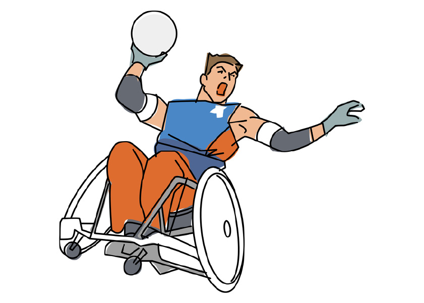 車いすラグビーは、四肢麻痺者など、比較的重い障がいのある人が競技できるチームスポーツとして考案された、車いす(ウィルチェアー)に乗って戦うラグビーです。
