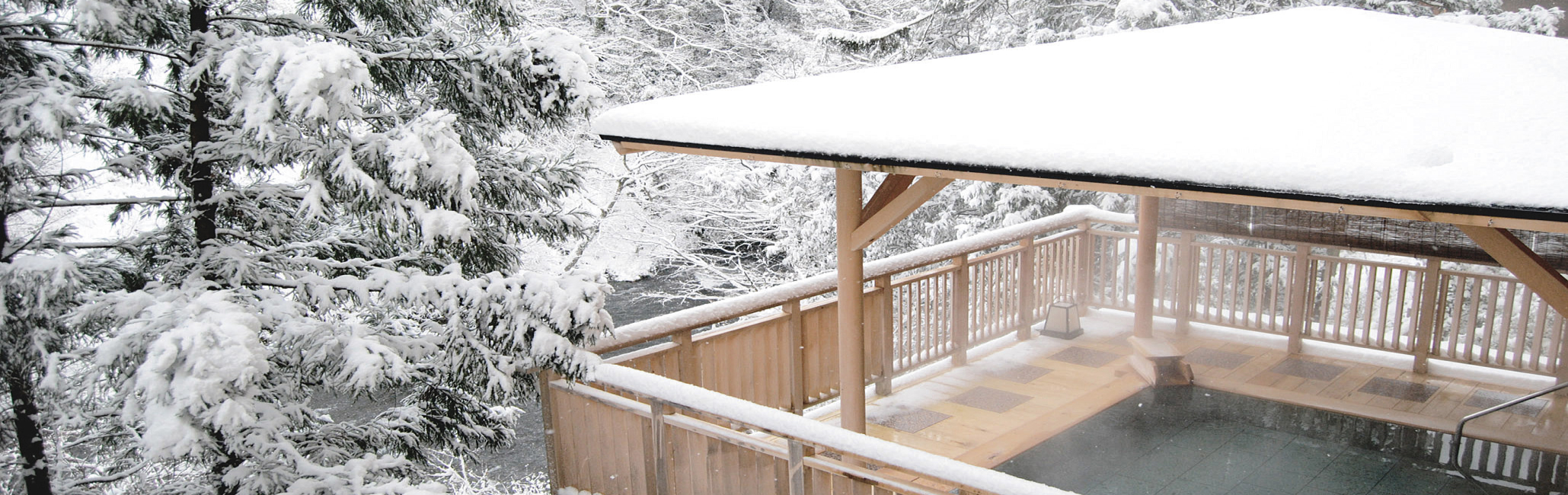 降雪状況はシーズン・天候により異なります。お天気情報をよくご確認の上、雪見露天をお楽しみ下さい。