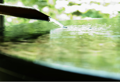 「大原の里」の温泉は、弱アルカリ性の泉質をもっており、療養と疲労回復効果を期待できる京都盆地でも数少ない効能高き温泉です。大浴場の他にも緑豊かな森林に囲まれた「露天五右衛門風呂」もお楽しみいただけます。当宿発祥の名物「味噌鍋」もかかせません!