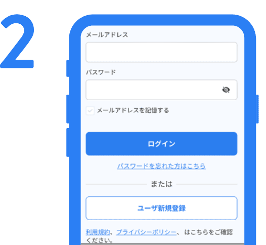 「ユーザ新規登録」 をタップして