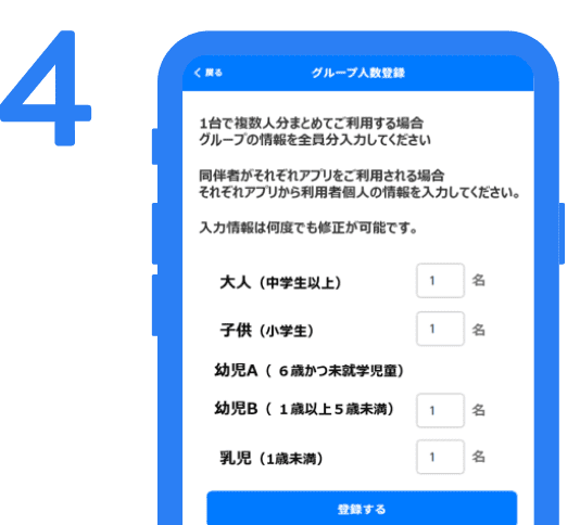 グループ人数登録を行います。