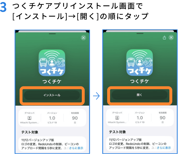 「つくチケアプリ」を起動し、