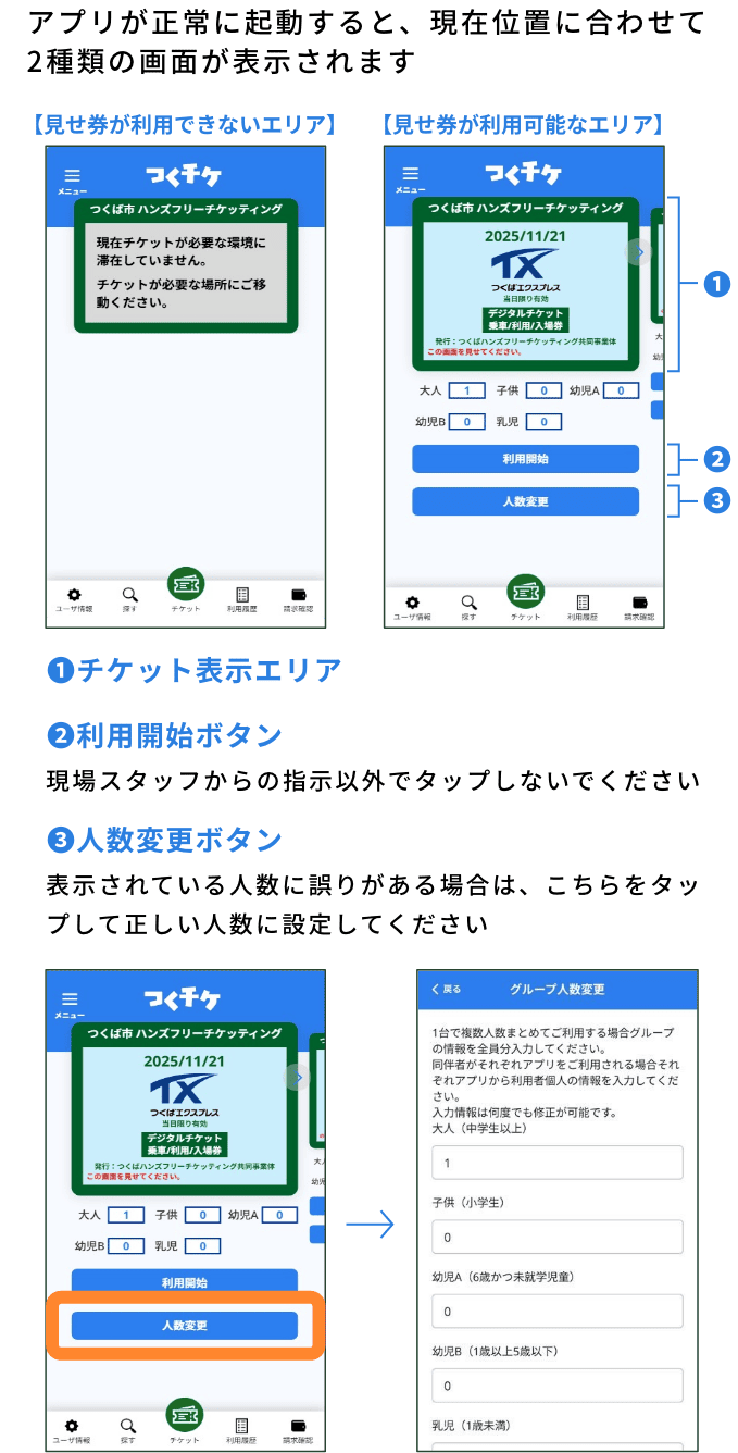 つくチケアプリを起動してご利用ください。