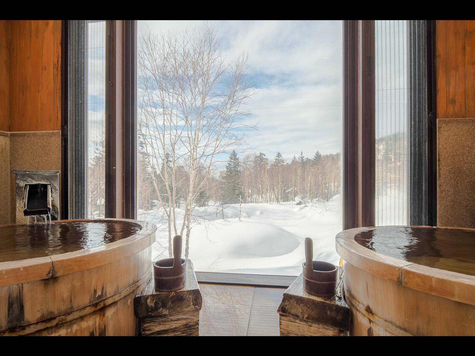 森に浮かぶような露天風呂をはじめ、古代檜風呂や樽風呂など、木のやさしさに触れられるお風呂がたくさん。 日本にいる喜びをかみしめるひと時です。