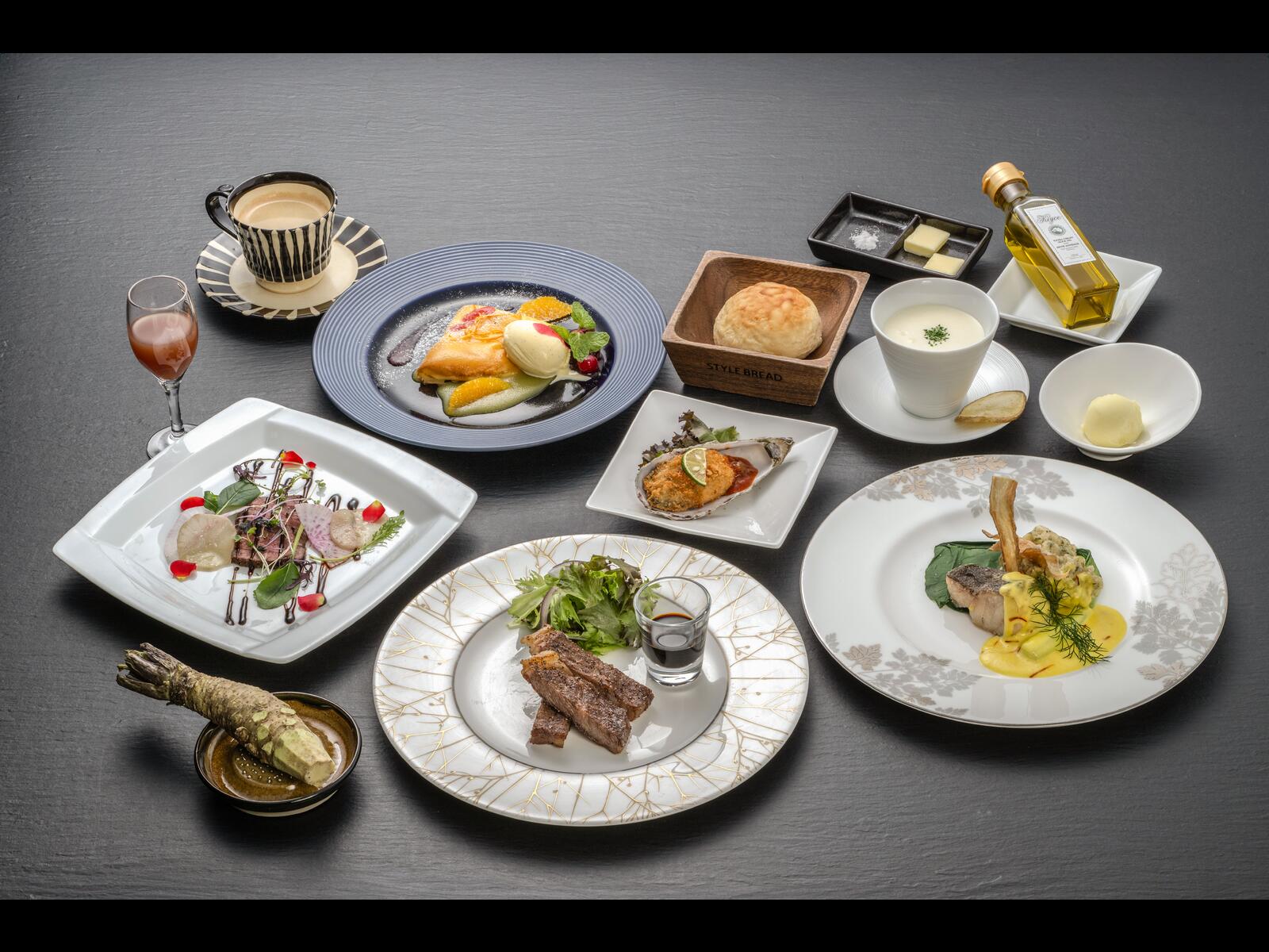 地元の新鮮な野菜をはじめ、お肉やお魚も産地特定の絶品を堪能できる、料理長自慢の創作料理がテーブルを彩ります。