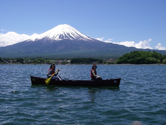 河口湖でのカナディアンカヌー体験です。