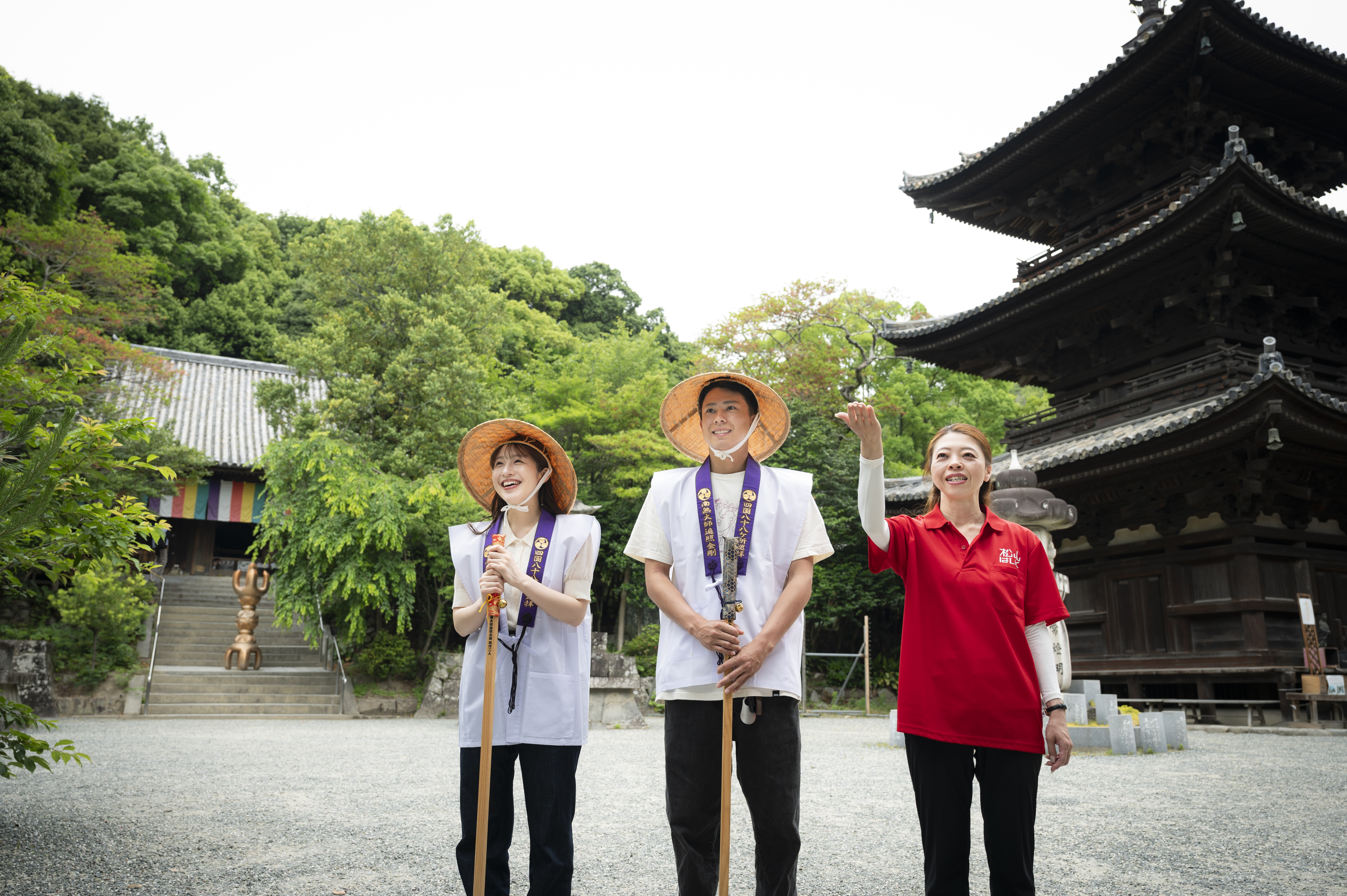 | 料金について | 参加費にガイド料、遍路装束4点セット(菅笠・金剛杖・袖なし白衣・輪袈裟)レンタル料、納め札2枚/名、石手寺名物焼餅2枚/名を含みます。 料金は当日現金にてお支払いください。(カードは使えません) |