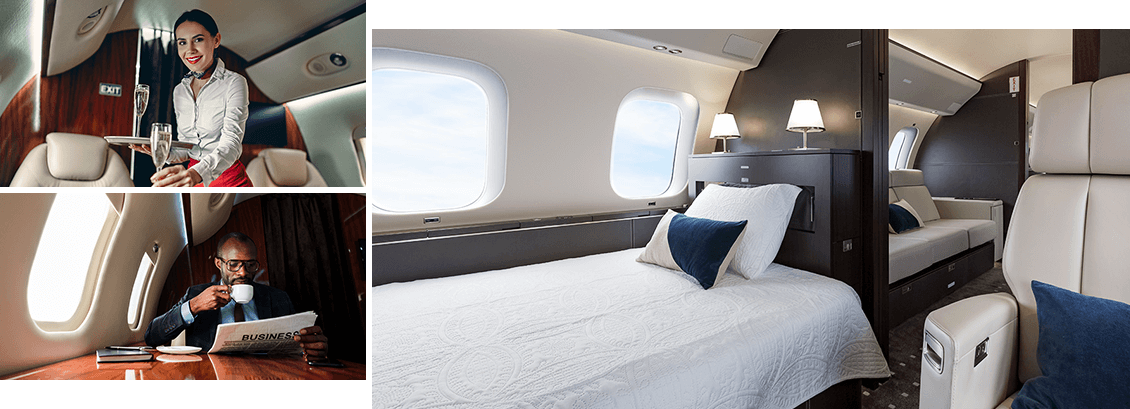 - 1.空の上ではファーストクラスを凌ぐ、完全なプライベート空間となります。