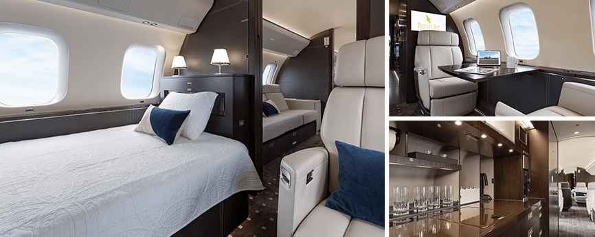 ボンバルディア・エアロスペース社の超長距離型ビジネスジェットです。航続距離は14,260kmを誇り、16時間以上の連続フライトが可能です。機内スペースが広く、快適性と居住性が従来機に比べアップしている。