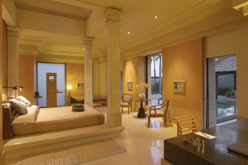 メイン棟の外側を取り囲むように並ぶ客室はすべて一戸独立型。客室には、高い天井と4本の石柱に守られたキングサイズベッド、石灰石の屋外バスタブ、そして、中庭にはバレ(東屋)があり、プライベートプールを備えた客室もあります。チェックインはお泊りいただくそれぞれの客室にてお手続きします。