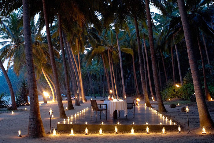 夕食はビーチでのロマンティックディナーはいかがでしょうか。いくつものキャンドルに照らされたヤシの木の下で、大切な方との特別なディナーをお楽しみください。西洋料理のコースをご堪能いただけます。