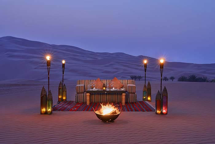 3つのホテルは車で15分ほどの距離ですので、それぞれに併設されたレストランを楽しむことができます。中東料理、アフリカ料理、イタリア料理などもあり、野外での食事では、砂を掘ってソファーを作ってくれる等、ご希望に合わせてさまざまなカスタマイズが可能なので飽きずにお楽しみいただけます。