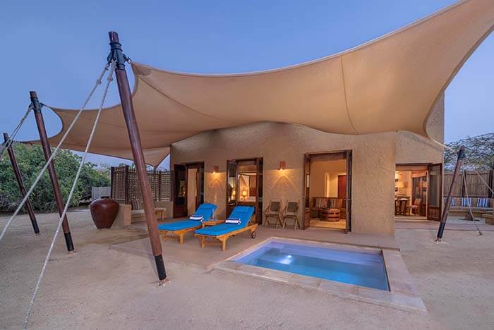 島内には3つのアナンタラホテルがあります。アラビア装飾が美しいアラビア湾を見下ろす砦風のメインホテルのアナンタラ・デザートアイランド・リゾート&スパでは、伝統的なスパ・トリートメントも人気です。 島の中央にあるワイルドライフパークに隣接しているアフリカスタイルのアルサヘルは、30棟しかないサファリスタイルのヴィラで、野生動物をさらに間近に眺めることができます。草原で伝統的なアフタヌーンティーをいただくのもおすすめです。島の東側に列をなして建てられた白砂ビーチが目の前に広がるアルヤームでは、マングローブのラグーンに集まるフラミンゴの群れを観察することができます。渡り鳥が豊富に生息する静かなラグーンでカヤック探検や海岸線でのお食事を堪能いただくのも良いでしょう。1つのホテルに滞在するのも、それぞれ2泊ずつ滞在するのも、ホテルの楽しみ方は自由自在です。
