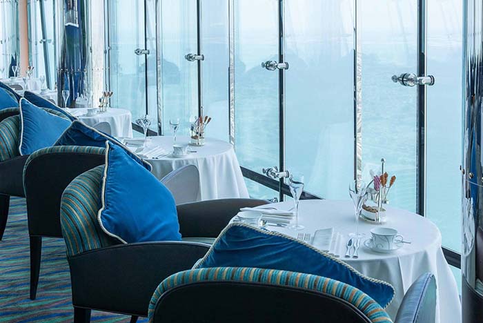 中央にある巨大な水槽の中で泳ぐ魚を優雅に眺めながらお食事はいかがでしょうか。こちらのレストランでは、イタリア・カプリ島のミシュラン2星レストランシェフによるお食事がお楽しみいただけます。そのほか、ホテル内にはアラビア料理はもちろんのこと、フランス料理、中近東とヨーロッパの創作料理などもあり、その日の気分に合わせてお選びいただけます。