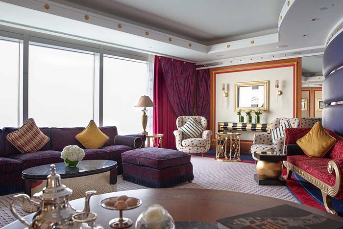 ドバイが誇るホテル「ブルジュ アル アラブ」は、最高級ホテル5つ星にランクされますが、それを超えるという意味で『7つ星ホテル』と呼称されています。アラブの伝統的な船「ダウ船」の帆をイメージして作られているその外観もドバイの象徴と呼ばれる特徴のひとつ。ペルシャ湾に面する砂浜から280m離れた人工島に建ち、本土とは橋でつながっていますが、ドバイ空港からは、専用ヘリコプターにより直接ご移動も可能です。洗練された贅沢なステイをお楽しみいただくのはいかがでしょうか。