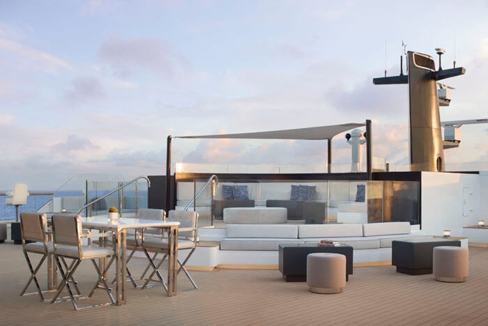 全149室がオーシャンビューで、プライベートテラスを備えます。シグネチャースイート以上のお部屋にはバスタブがあり、お部屋の広さは29u以上、テラスは5u以上とゆったりとした造りになっています。クルーズには珍しく、メゾネットタイプやコネクティングタイプのお部屋もございます