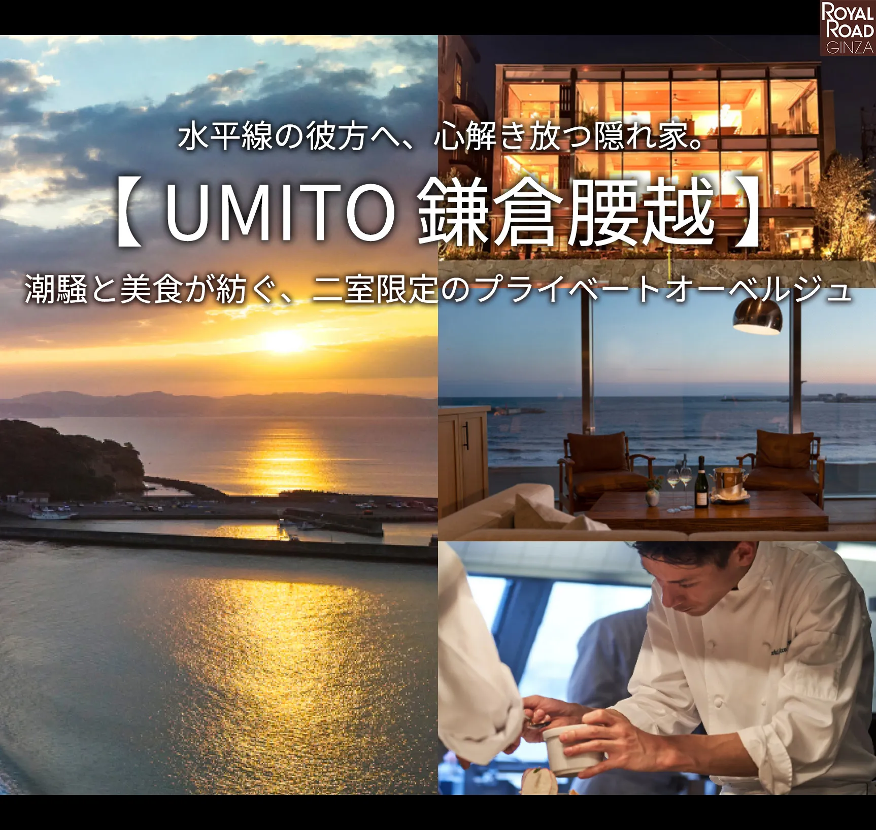 ⽔平線の彼⽅へ、⼼解き放つ隠れ家。「UMITO 鎌倉腰越」潮騒と美⾷が紡ぐ、⼆室限定のプライベートオーベルジュ。海辺の⼀等地で、海と共に過ごす極上のひとときを、あなたに。…