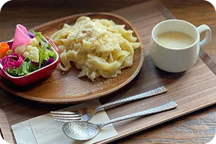 文化庁は、地域で世代を超えて受け継がれてきた食文化を、100年後に残したい食文化「100年フード」として認定しています。山梨県内でも認定が少ないこの100年フードに登録されているのが、農カフェZenchoの「ほうとうパスタ」。ベジタリアンやヴィーガンの方にもおいしく召し上がっていただけます。