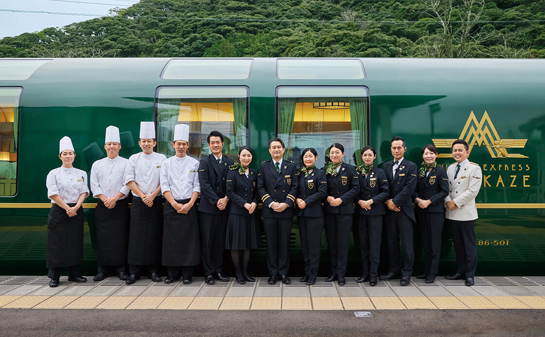 TWILIGHT EXPRESS 瑞風のクルーは、細やかな心配りと笑顔でみなさまをお迎えいたします。