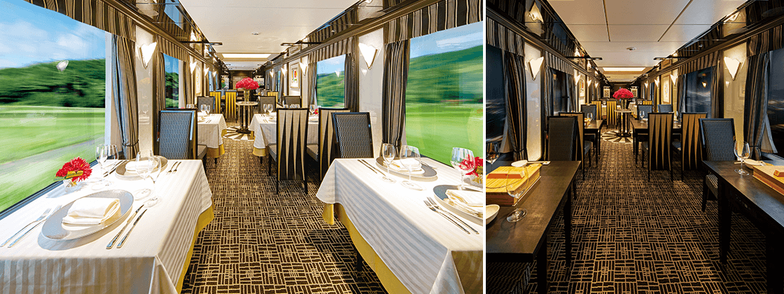 美しい車窓の眺め、一流の食の匠による料理。洗練された車両、