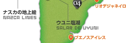 標高約3,700mもの高地にある世界最大級の塩の湖・ウユニ塩湖は、面積が12,000km2におよび、地平線まで果てしなく塩の大地が続く神秘的な光景が見られます。塩湖の歴史はアンデス山脈の造山運動に比べると新しく、約1万年前に巨大な湖が干上がって今の塩湖になったと言われています。